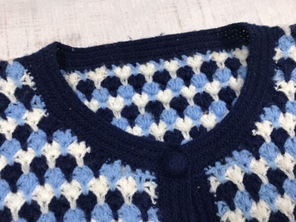 レトロ モード カントリー 古着 クロシェ編み ジャガード ニットカーディガン 羽織り レディース くるみボタン 青/紺/白 です。| 出价者 | 信用 | 价格 | 时间 |