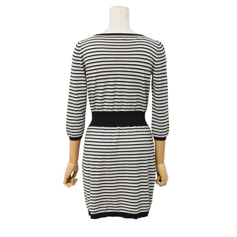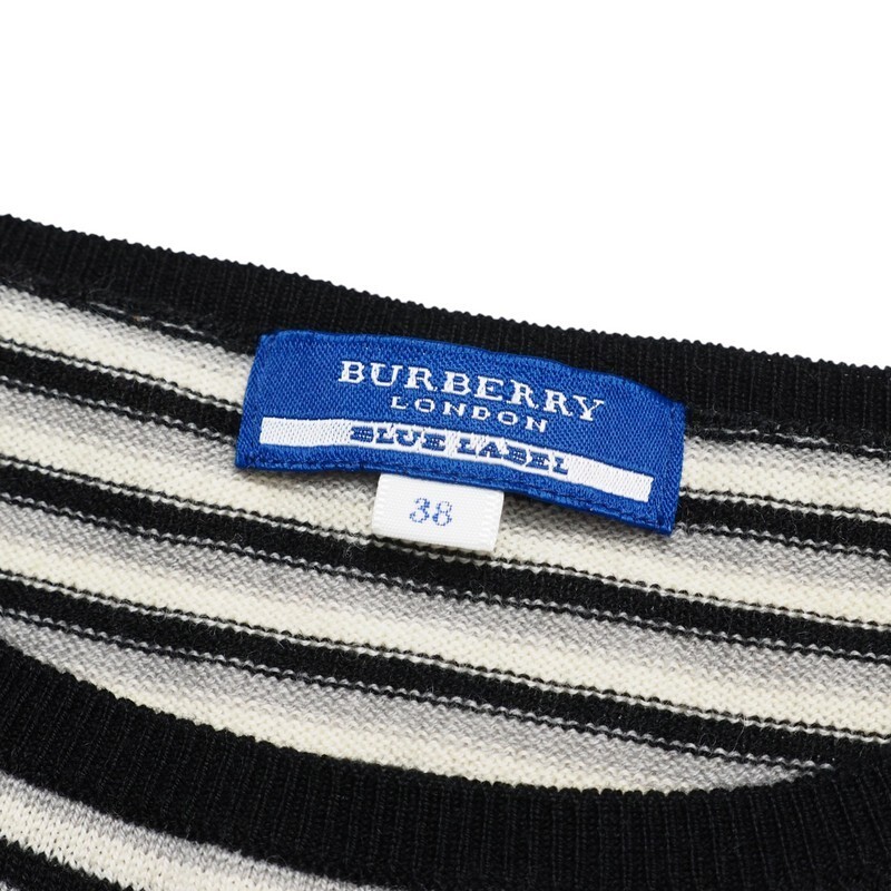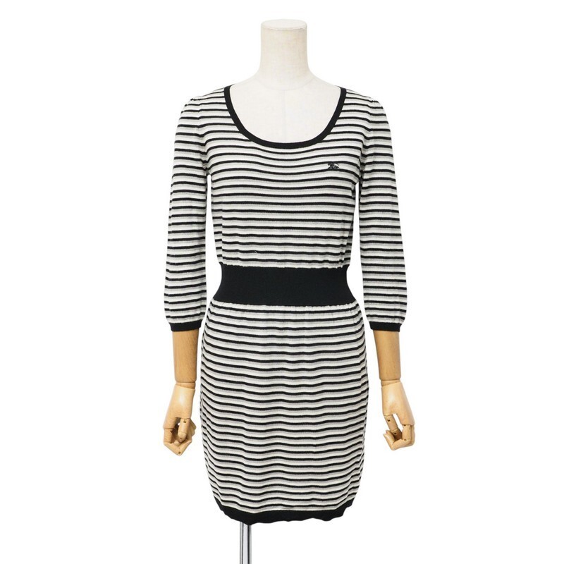 | TJ3806=バーバリーブルーレーベル/BURBERRY*ボーダー柄*ロゴ刺しゅう*カシミヤ混ニット*七分袖ワンピース*プルオーバー*サイズ38 | |||