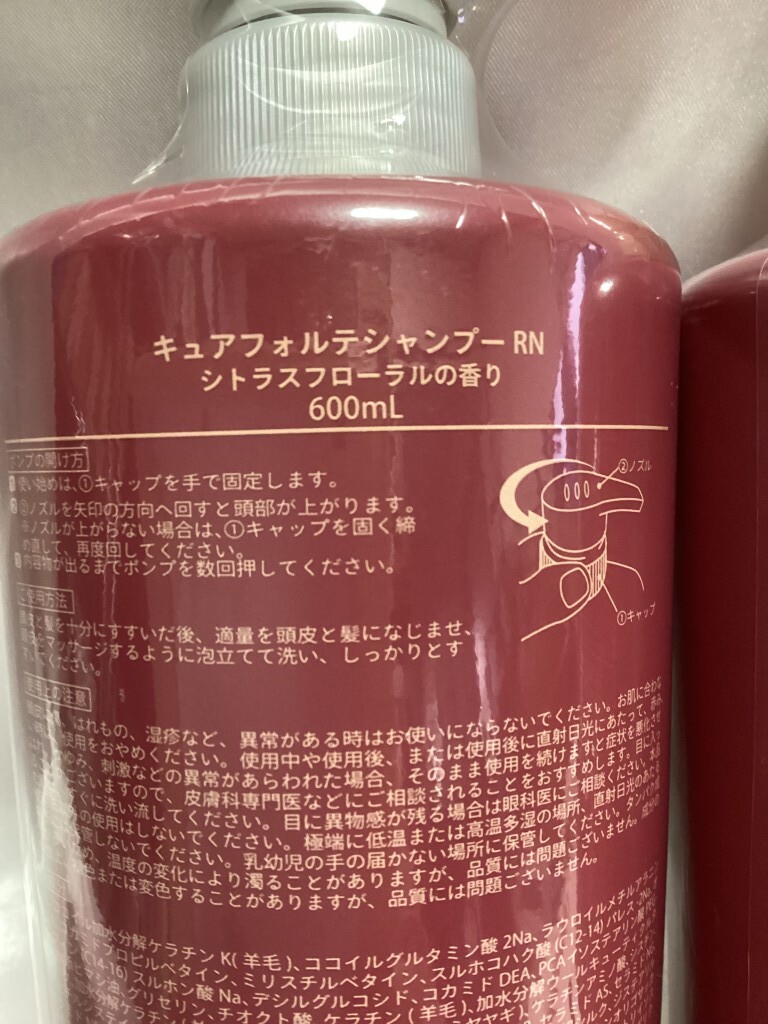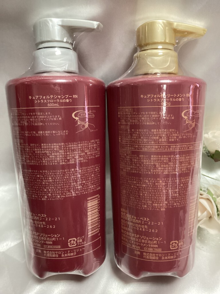 | 商品説明 | ご覧いただきましてありがとうございます。 出品させていただきます商品は ドゥ・ベスト キュアフォルテ シャンプーRN シトラスフローラルの香り 600ml×2本セット になります。 商品状態 *未使用品になります。 *付属品は画像にある商品のみになります。 *花は付属しません。 |