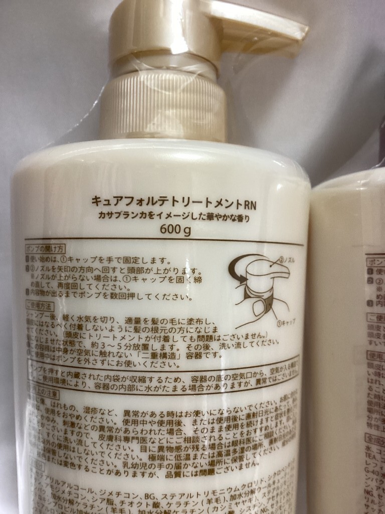| 商品説明 | ご覧いただきましてありがとうございます。 出品させていただきます商品は ドゥ・ベスト キュアフォルテ シャンプーRN600ml・トリートメントRN 600g×2本セット になります。 商品状態 *未使用品になります。 *付属品は画像にある商品のみになります。 *花は付属しません。 |