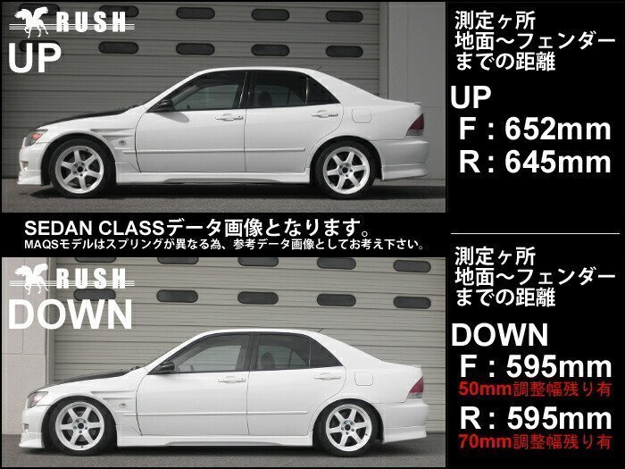| 調 整 幅 | : | F -12mm~-142mm / R -19mm~-109mm ※MAQSモデルはスプリングが異なる為、調整幅も異なります |