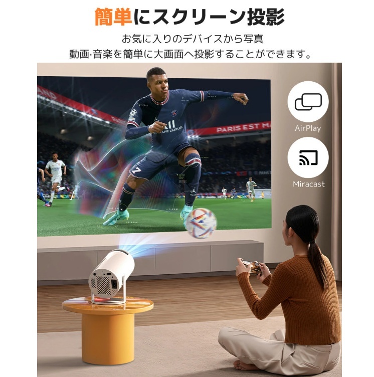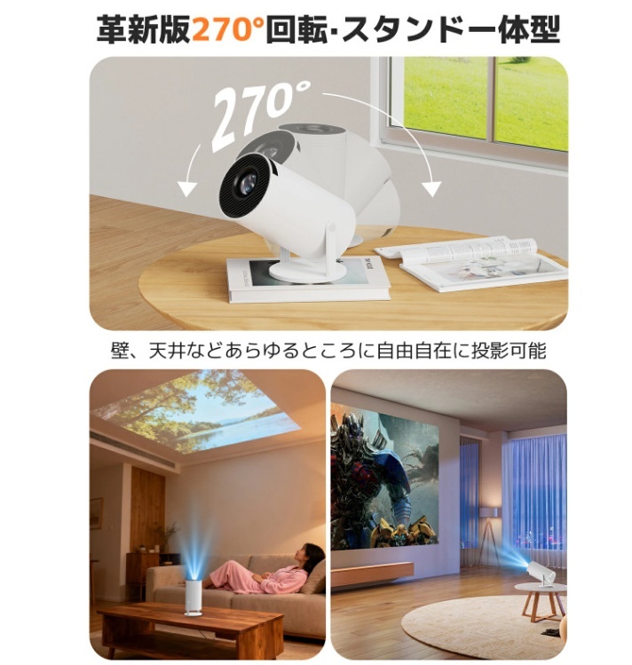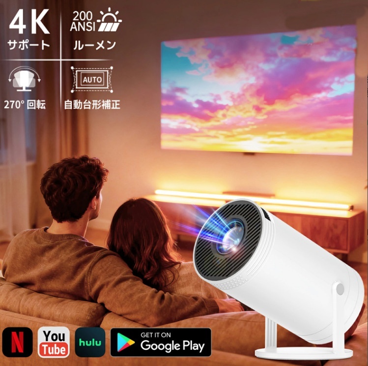 | オススメポイント | 【Android TV内蔵】リモコン1つ!自宅のエンタメが一気に充実 複雑な配線やデバイスの切り替えから解放されます。内蔵されたAndroid TVが、エンタメのすべてをシンプルに。 Wi-Fiに繋ぐだけで、Netflix、YouTube、Prime Videoなどがリモコン操作で即起動。朝はリビングでニュースを流し、昼は趣味のDIY動画を大画面で確認し、夜は寝室の天井に映して大人だけで映画三昧。これ一台で、家中があなた専用のオンデマンドホームシアターに早変わりします。スマホの画面をワイヤレスミラーリングすれば、旅行の思い出写真を大画面で家族と共有するのも、より特別な時間になるでしょう。 【270°回転スタンド & 自動台形補正】置くだけ、映せる!自由すぎる投影体験 面倒な設定は一切なし。このプロジェクターは、一体化した270°回転スタンドが最大の魅力です。 リビングのソファからは壁に、ベッドに寝転んだままなら天井に――プロジェクター自体を動かすことなく、首をかしげるような姿勢を強いられることもなく、お部屋のレイアウトやその時の気分に合わせて、好きな場所に好きな角度で投影できます。自動台形補正機能が斜めから映した時の歪みを瞬時に修正するので、ただ置くだけでいつもきれいな矩形の画面が広がります。お子様がいるご家庭では、子供部屋の低い位置の壁に投影して、床に座ってアニメを楽しむのも安全でおすすめ。あなたの「くつろぎ」を邪魔しない、最も自由な映画の見方を提供します。 【200ASINルーメン高輝度 & 1080PフルHD】昼間のリビングでもくっきり美画質 「プロジェクターは暗い部屋でしか使えない」という常識をくつがえします。200ASINルーメンの高輝度と1080PフルHDの高解像度により、カーテンを少し開けた明るいリビングでも、色鮮やかでくっきりとした映像をお楽しみいただけます。NTSC 95% 以上の広色域カバー率で、自然の緑や海の青がよりリアルに再現され、4Kの高画質コンテンツも美しく表示。スポーツ観戦ではピッチの芝生の一枚一枚まで、映画では闇夜に浮かび上がる星の輝きまで、これまで見えなかった細部に驚くことでしょう。スクリーンがなくても、白い壁さえあれば大丈夫。迫力の大画面で、毎日のエンタメ体験を格上げします。 【Wi-Fi 6 & Bluetooth 5.4】ラグ知らずの快適接続で、映像も音も思いのまま 動画がカクカクする、ゲームの操作が遅れてしまう…そんなストレスから解放されます。 最新のWi-Fi 6に対応し、従来より最大60%も遅延を低減。混雑しやすい時間帯でも、5GHz帯で高速かつ安定した通信を実現するため、4K動画もサクサク再生。オンラインゲームも、ライブ配信も、思う存分没頭できます。 さらに、Bluetooth 5.4でワイヤレスイヤホンやご自慢のスピーカーに簡単接続。夜中でも大きな音を気にせずに映画に没頭したり、お好みの高音質環境で臨場感あふれるサウンドを体験できます。有線接続も充実しており、ゲーム機やPCともシームレスに接続。すべてのエンタメを、最も快適な形で楽しむための基盤が整っています。 【多彩な接続性 & 安心の長期保証】これ1台で、すべてのデバイスとつながる。長く使える安心も。 このプロジェクターは、お家にあるほぼすべてのガジェットと友達になれます。 HDMI、USBなど有線端子も豊富に備えているので、Nintendo SwitchやPS5などのゲーム機を大画面で楽しんだり、USBメモリの写真や動画を直接再生したり、PCをつないで在宅勤務のプレゼンに活用することも可能。 |