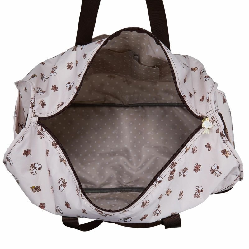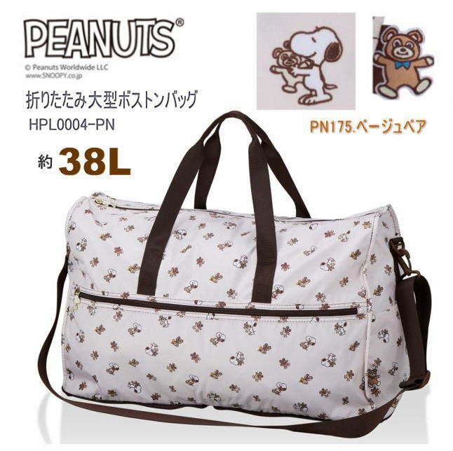 送料無料 スヌーピー ボストンバッグ 大型 折りたたみ キャリーオン ショルダーベルト PEANUTS HPL0004 ベージュベア 1泊2泊 38L O-170