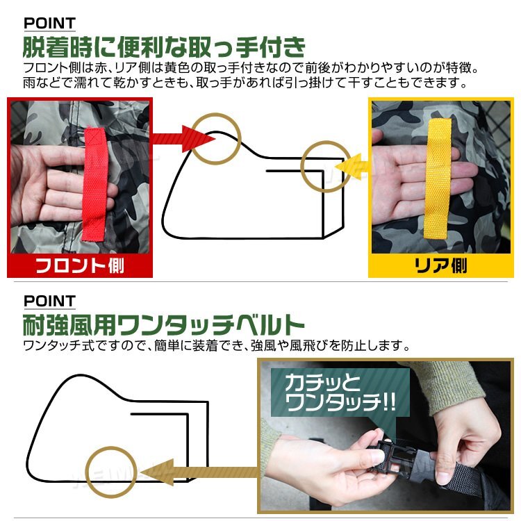 | ★商品仕様 [カラー] BDU(ウッドランド)タイプの迷彩柄4色 ※ご使用のパソコンのモニターによっては、商品画像等の画面表示上の色合いと、実際の商品の色が異なる場合があります。 [サイズ] 全長(約):205cm 全高(約):130cm 全幅(約):100cm テール幅上(約):25cm テール幅下(約):40cm テール高(約):80cm [素材] 高品質ポリエステル タフタ100% コットンポリエステル(溶けない部分) ★適応サイズ [ホンダ] リード50/90/100/110 エイプ50/100 ディオ チェスタ ベンリィCD50/50S/90/125T スーパーカブ50/70/90 (かご付き) ジョルノ グロム ※耐熱非対応 Dunk NSR50/80 EZ90 XR50/100 モタード ※耐熱非対応 プレスカブ50 (かご付き) シャリィ [ヤマハ] VOX アクシス90 ビーウィズ(BW'S) チャンプCX FZ50 ジョグポシェ ギア C TZ50/80 YB50 DT50 ※耐熱非対応 TDR50/80 YSR50/80 ※耐熱非対応 タウンメイト50/80 (かご付き) ニュースメイト50/80 (かご付き) V80メイト50/80 (かご付き) [スズキ] アドレスV100/125/G バーディ50/80/90 (かご付き) 新聞バーディ50 GS50 モレ ランディ ストリートマジック [カワサキ] KSR-I ※耐熱非対応 KSR-II ※耐熱非対応 |