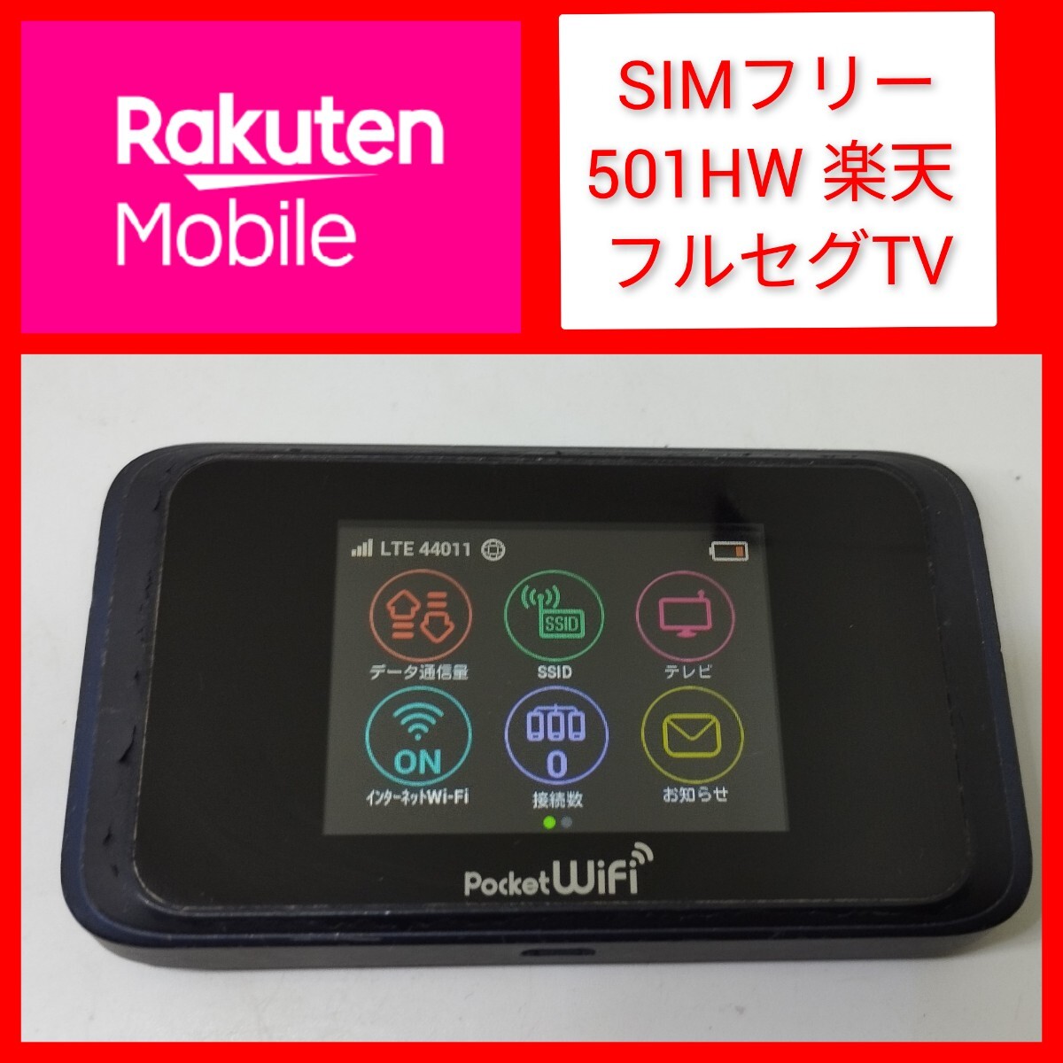 SIMフリー 501HW フルセグTVチューナー内蔵 ルーター 楽天設定済 ポケットWiFi モバイルルーター 格安SIM 502hw同等 iPhoneでテレビ視聴| 出价者 | 信用 | 价格 | 时间 |