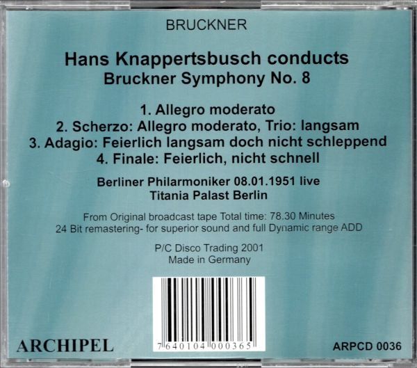 アントン・ブルックナー交響曲第8番 ベルリン・フィルハーモニー管弦楽団 指揮:ハンス・クナッパーツブッシュ ライブ・レコーディング [浏览原始页面]