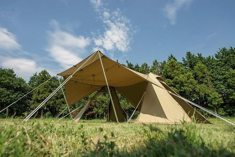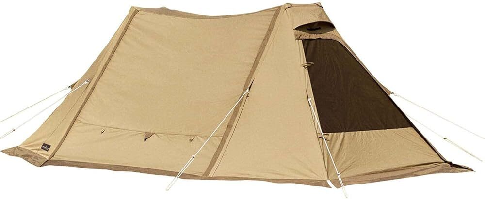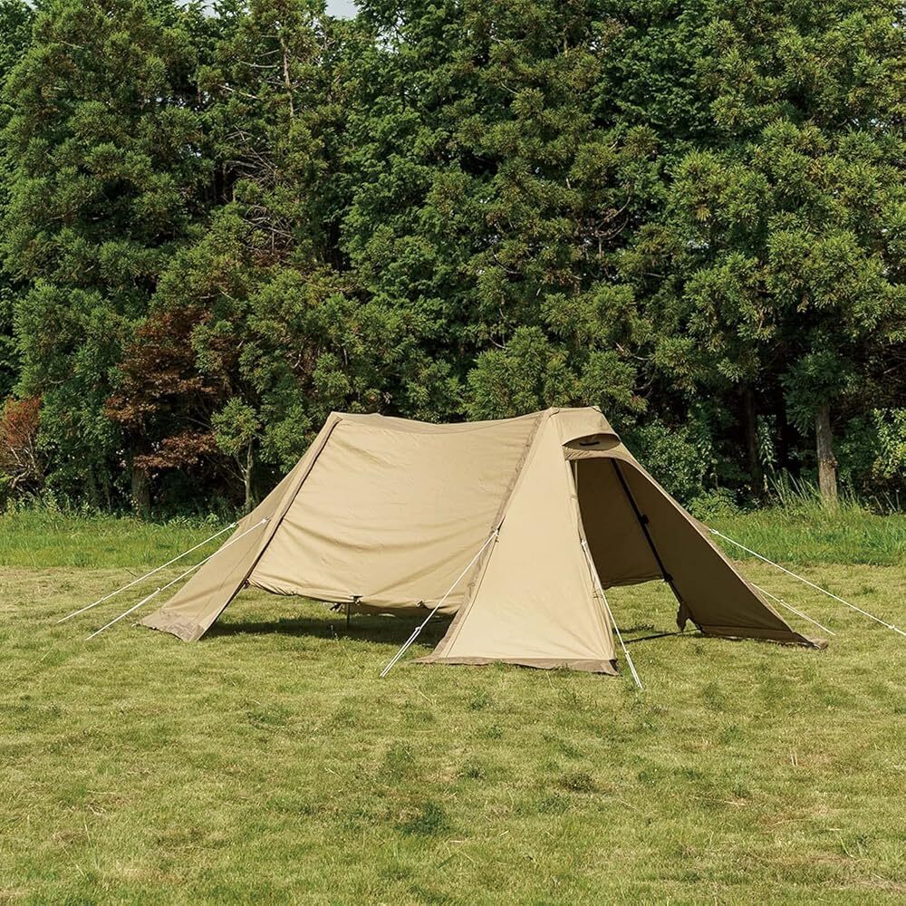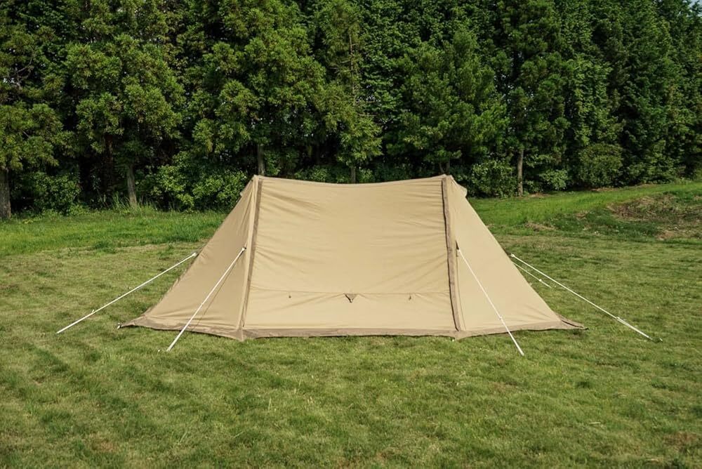 【新品】毎日13時までに決済確認がとれたご注文は当日発送致します。「商品情報」【1~2人用】ソロ用テントだと小さすぎる、でも大型幕は必要ないという方にフィットするちょうどいいサイズ感で使い勝手の良いシェルターです。サイド4か所にトリプルファスナーが装備されています。「主な仕様」素材:フライ/TC・耐水圧350mm、ポール/6061アルミ合金(直径22mm、直径14.5mm)仕様:撥水加工(撥水性、撥油性、防汚性、耐摩擦性に効果を発揮します。)、T/C(ポリエステルとコットンの混紡素材。通気性、吸湿性に優れています。)サイズ:420×160×256cm重量:7.56kgカラー:サンドベージュ付属品:張り綱、アイアンハンマー、スチールピン、収納袋