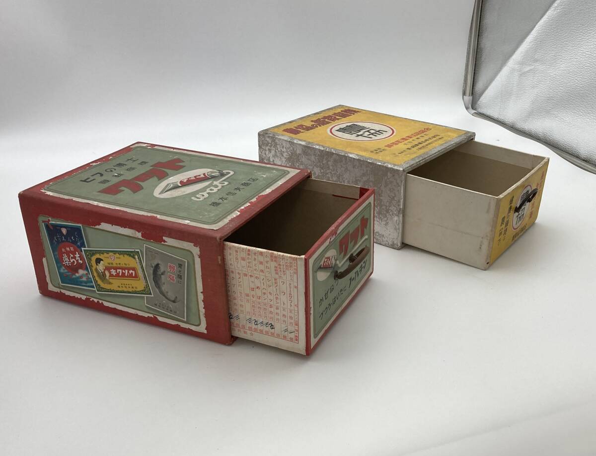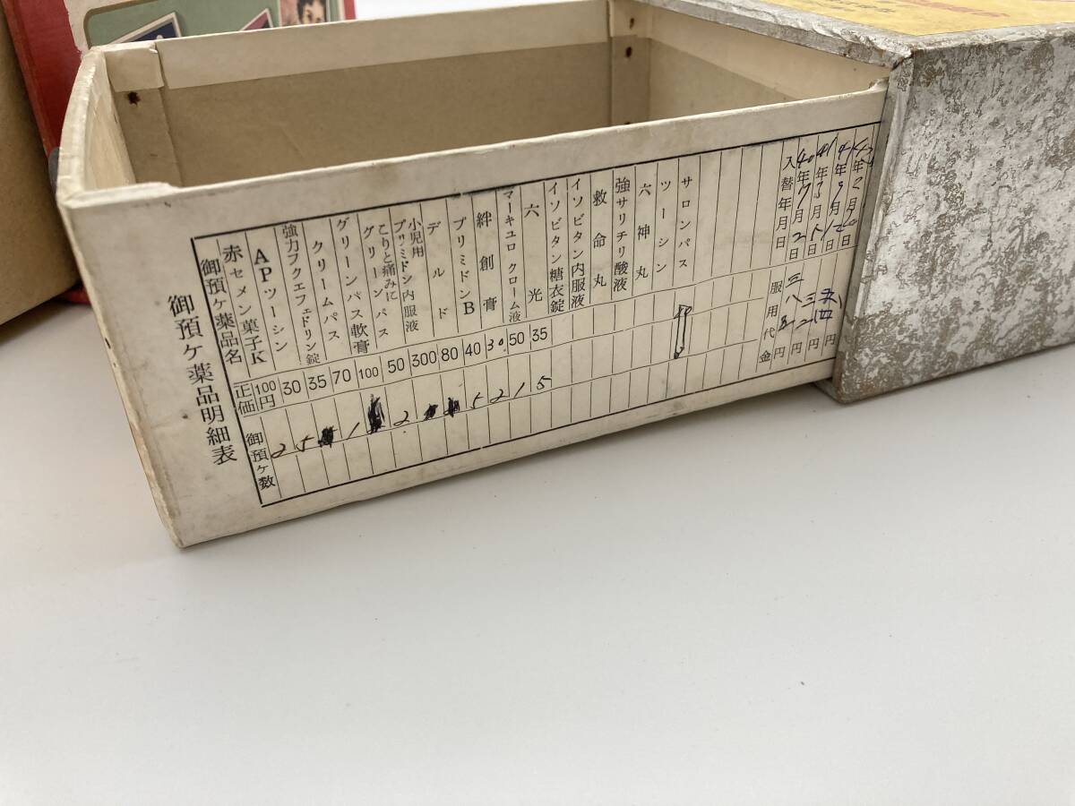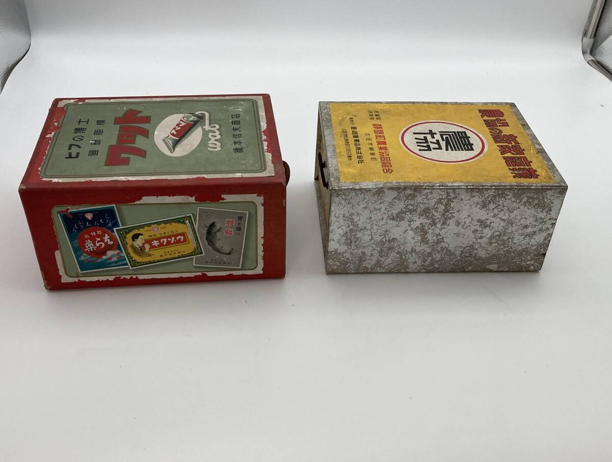 | 昭和レトロ 戦前戦後 古い配置薬箱、置き薬箱 2点 / ワット・橋本信夫商店、 農協の新家庭薬 | |