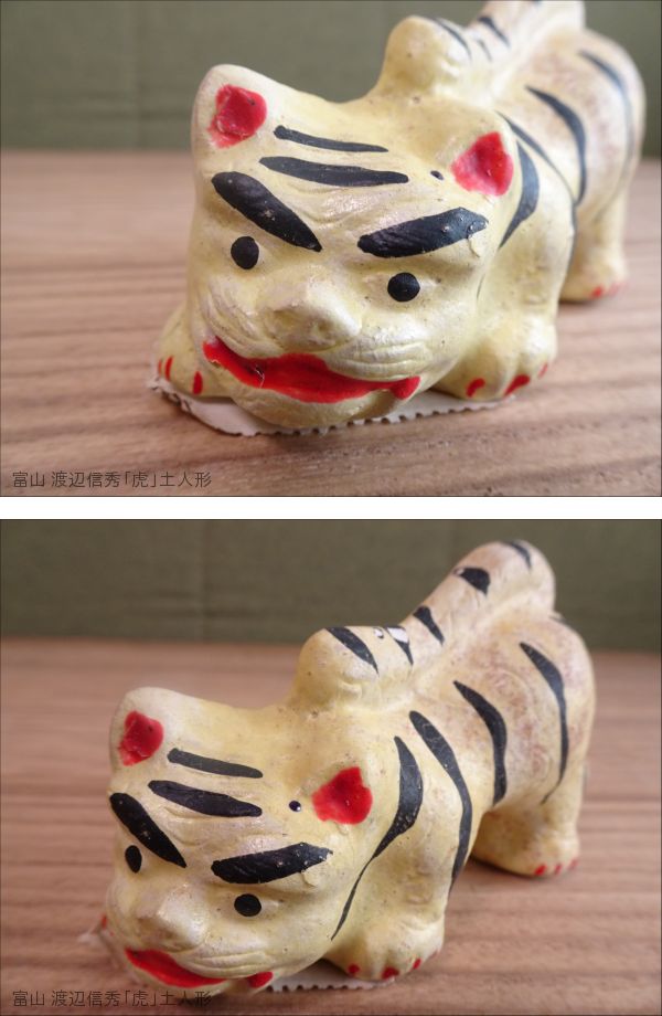4)郷土玩具 民芸品 富山 渡辺信秀「虎」土人形 置物 昭和中期 当時物 | |||||||||||