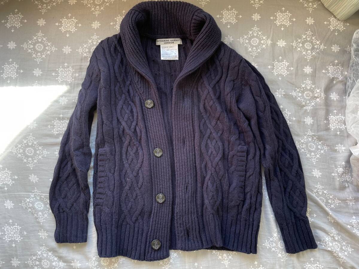 KATHARINE HAMNETT LONDON ショールカラーニットカーディガン ネイビー Mサイズです。