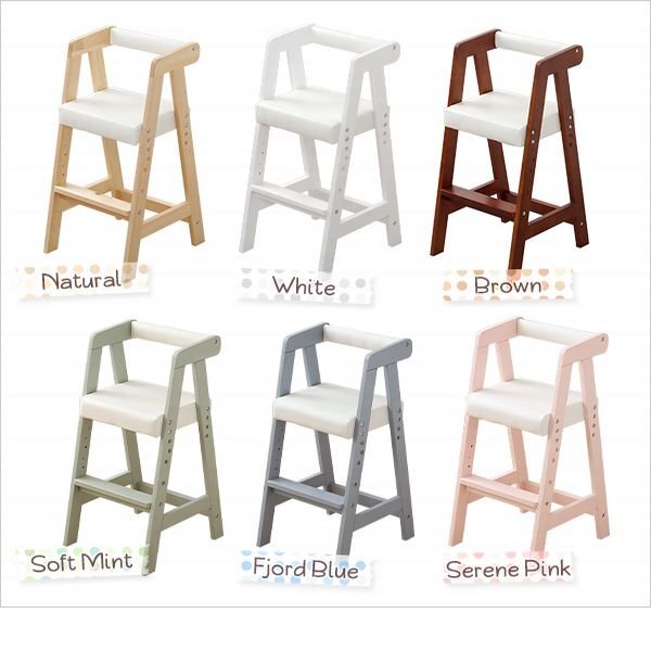 場所を取らないコンパクトサイズのキッズチェア! 丈夫な天然パイン材フレームで安心設計です。 座面と足置きは3段階調節可能です。 カラーは6色展開です。 |