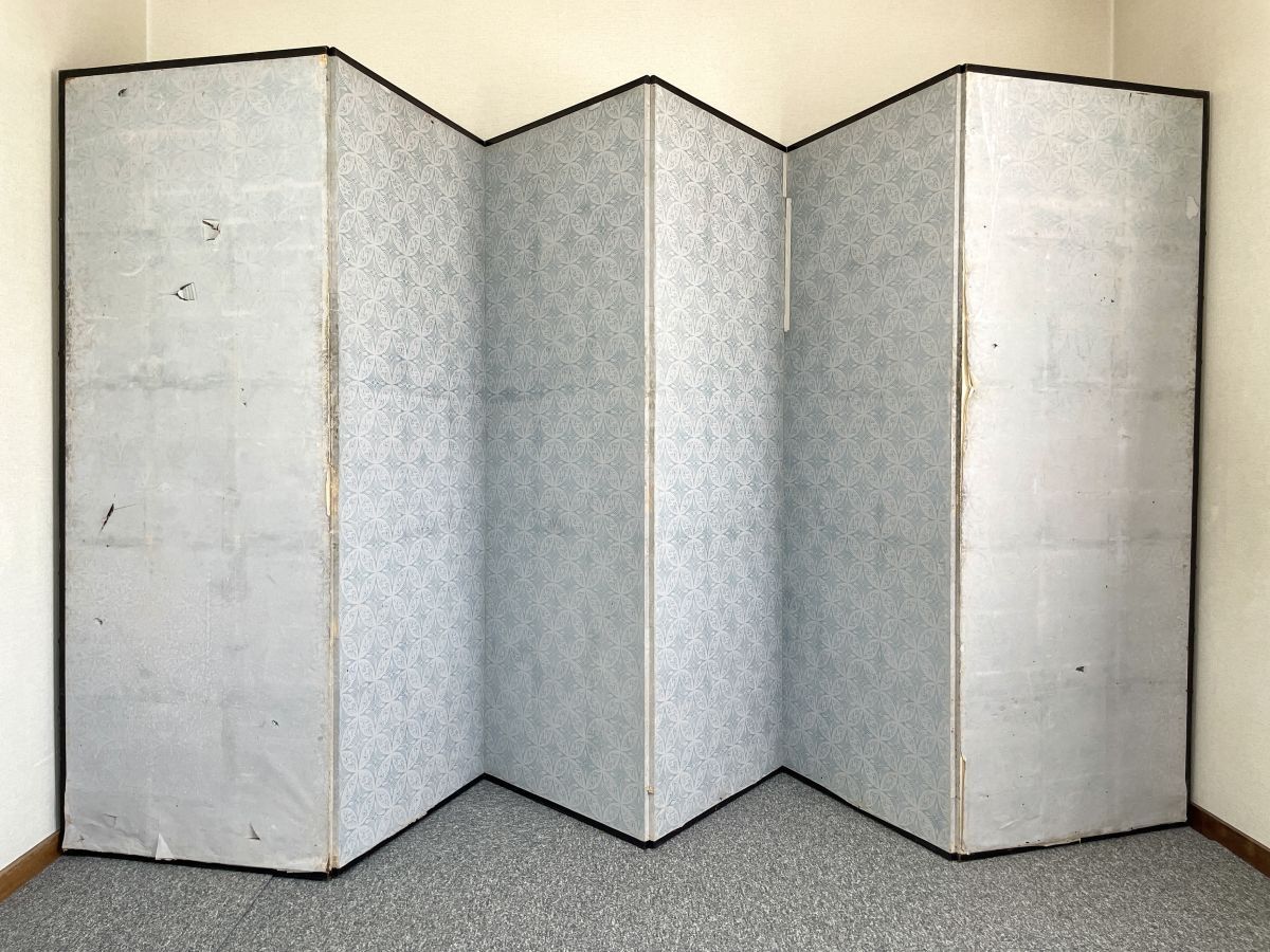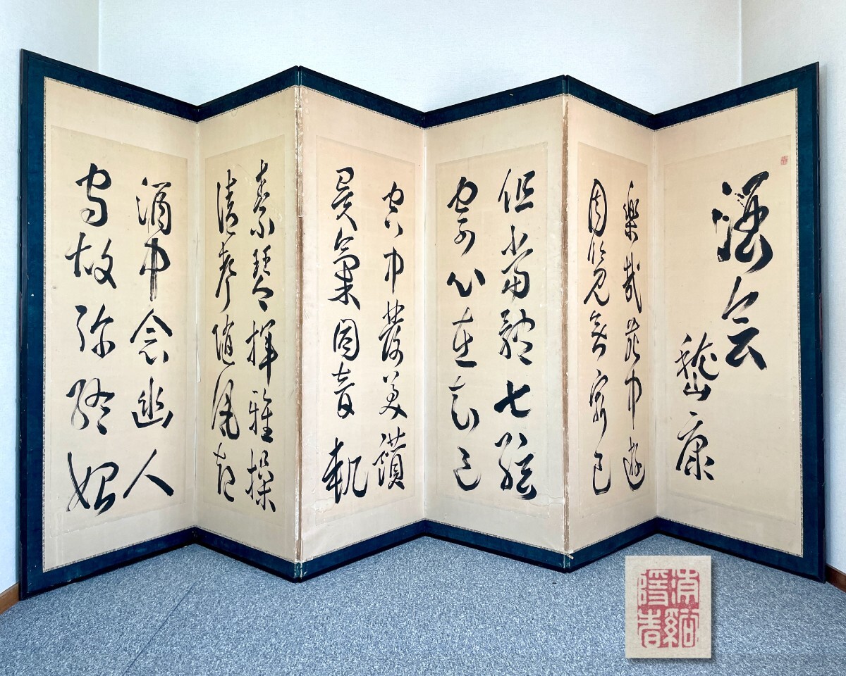 A36【真作】漢詩 書 中国 落款印 六曲屏風 六曲半双 時代屏風 間仕切 半双 折畳 折り畳み 衝立 つい立 背景