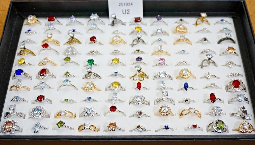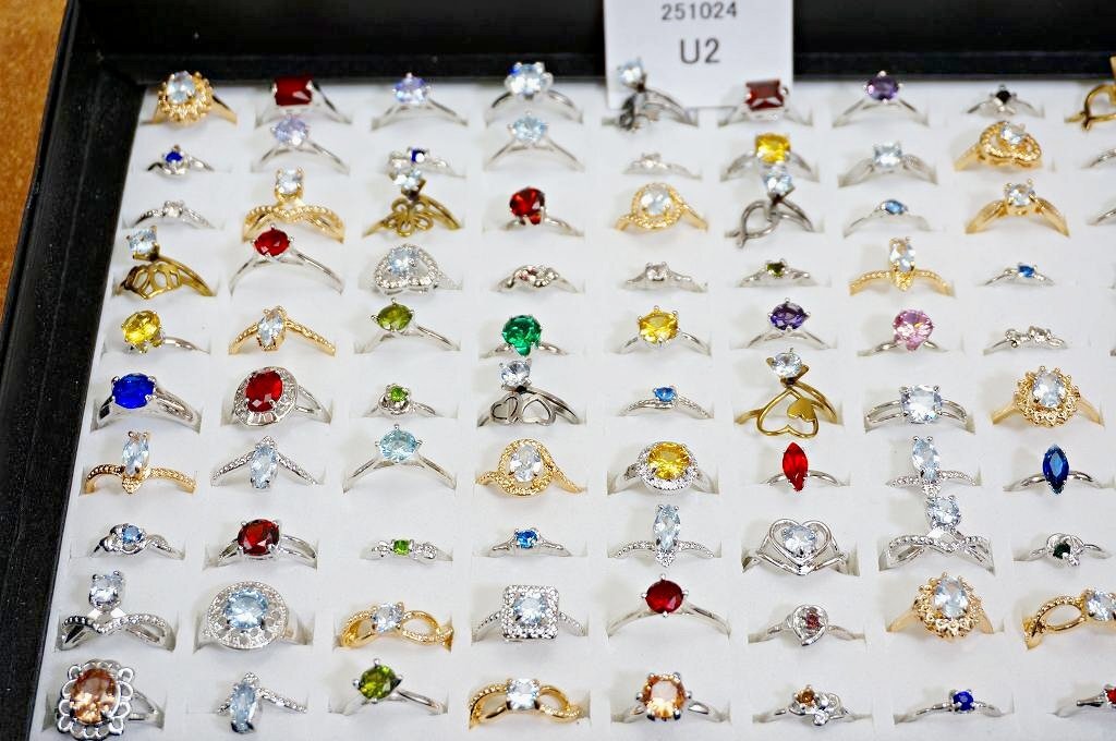 新品 キュービックジルコニア 石付き指輪 まとめて100点セット キュービックジルコニアの石付きファッションリング 100点セットです。 とても丁寧に研磨されており、艶、色味ともに非常に美しいものです。 写真がお譲りする商品の全てになります。 サイズ:約16-20mm 材質:キュービックジルコニア 個数:100点 ※ケースはおまけとして出品しますので、ケースの不具合に関しては対応はできません。 当店の他の出品商品との同梱料は下記のとおり落札1点につき200円です。 |