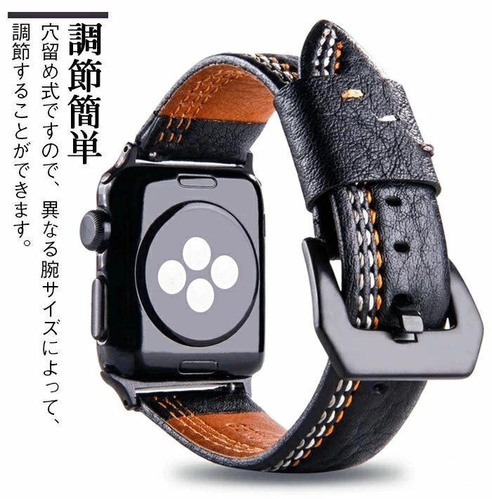 Apple Watch 対応 交換ベルト アップルウォッチ バンド 38mm/40mm 42mm/44mm 対応 Apple Watch バンド 本革 交換ベルト ☆ブラック