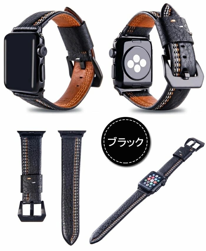 Apple Watch 対応 交換ベルト アップルウォッチ バンド 38mm/40mm 42mm/44mm 対応 Apple Watch バンド 本革 交換ベルト ☆ブラック [浏览原始页面]