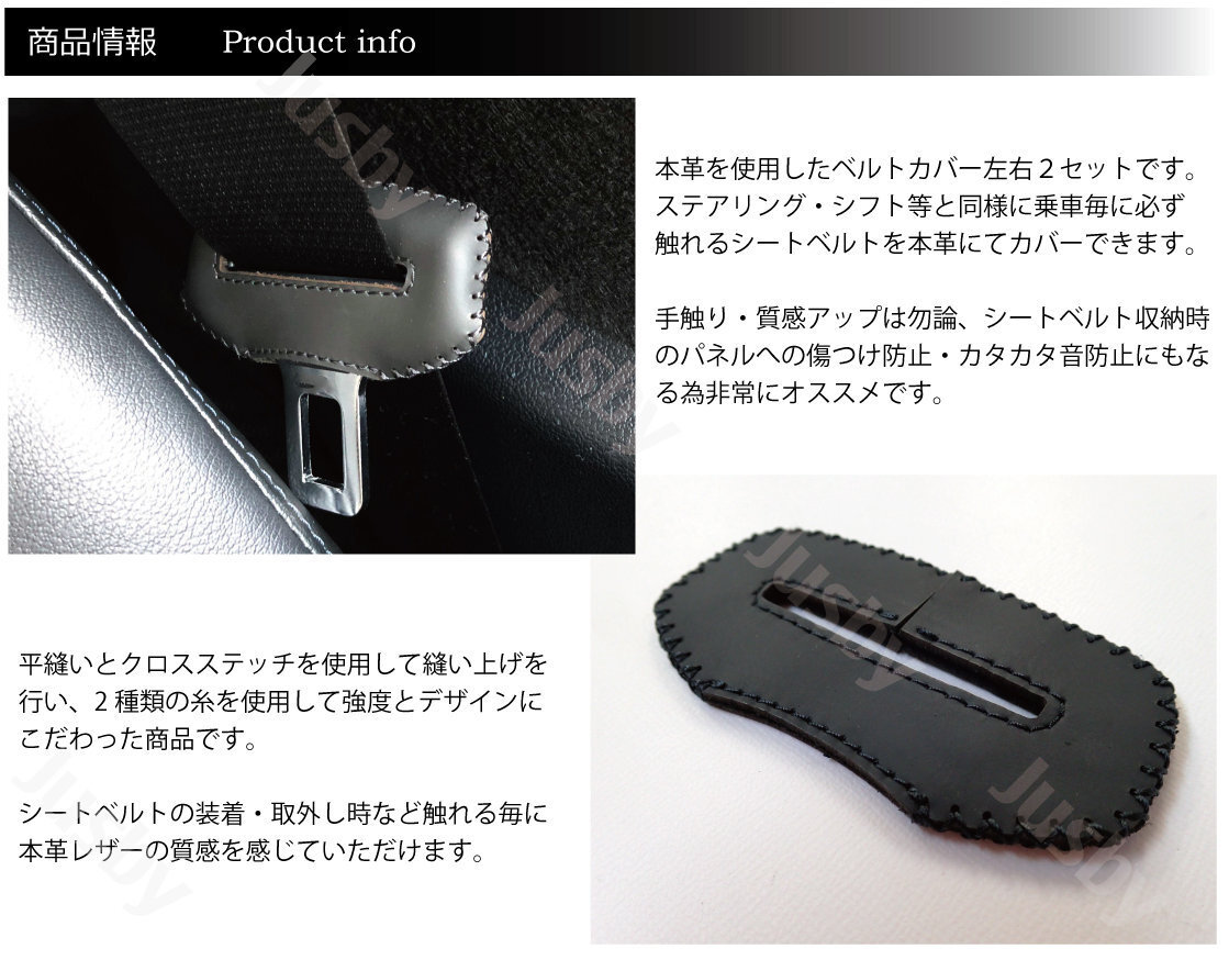 | 50系 プリウス&プリウスPHV専用 本皮シートベルトカバー(黒ステッチ/運転席・助手席用) 2個セットです 車種専用本革シートベルトカバー 2個セットです。プリウス(前期&後期)&プリウスPHV(前期&後期)に装着可能です。 ステアリングやシフトノブと同様に乗車毎に必ず触れるシートベルトを本革にてカバーできます。 手触り・質感アップは勿論シートベルト収納時 のパネルへの傷つけ防止・カタカタ音防止にもなる為非常にオススメです。 当商品は2個セット(黒ステッチ/運転席・助手席用)です。 プリウス/プリウスPHVは「運転席・助手席」と「後部座席(真ん中は除く)」でシートベルトの形状が異なります。 全ての席に装着したい場合は「運転席・助手席」と「後部座席」両方をお買い求めください。 カラーは 赤ステッチ・青ステッチ・黒ステッチの3種類からお選びいただけます。 当シートベルトは汎用品では有りません。 シートベルトサイズは数多く種類ある為適合車種以外ではご使用いただけません。 平縫いとクロスステッチを使用して縫い上げを行い、2種類の糸を使用して強度とデザインにこだわった商品です。 シートベルトの装着・取外し時など触れる毎に本革レザーの上品な質感を感じていただけます。 取付方法は簡単な付属両面テープでの固定または、付属糸で確実な装着&見た目もアップする手縫いによる固定の2種類があります。 お好みの方法で装着してご使用ください。 ( ・∀・)Φスタッフレビュー 通常はプラスチック剥き出しで冷たいシートベルト部分が当商品で一新します。厚みもアップして手触り・見た目の高級感もアップします。 ピラーなどに当たってカタカタ音がなっていたりする事もなくなりました。乗車毎に触れる部分なので装着後の満足度は非常に高くおすすめです♪ |