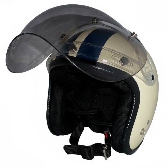 | 対応オプション | ■装飾用ビンテージゴーグル対応 装着の場合は重量が約85グラム増加します。 脱落防止のため、必ず後方のゴーグルバンドで固定してください ※ビンテージゴーグルはデザイン重視の装飾用であり、 通常の使用には適しておりませんので、ご留意ください。 ■3点ボタン固定式汎用シールド対応 装着の場合は重量が約170グラム増加します。 ※バブルシールドは構造上、球面のため正面以外の視線では 風景が若干歪んで見える事もございます。 気になる場合はRAMシールド等の2次元シールドをご選択下さい。 ■3点ボタン固定式汎用フリップアップベース対応 装着の場合は重量が約90グラム増加します。 ※フリップは調整ができるように、若干カシメが甘くなっております。 固定が安定しない場合は、左右の吸盤をはがし(両面テープ)金属の カシメ(ハトメ)部分を釘などで軽く叩いて、固定力の調整ができます。 ■3点ボタン固定式汎用バイザー対応 装着の場合は重量が約20グラム増加します。 |