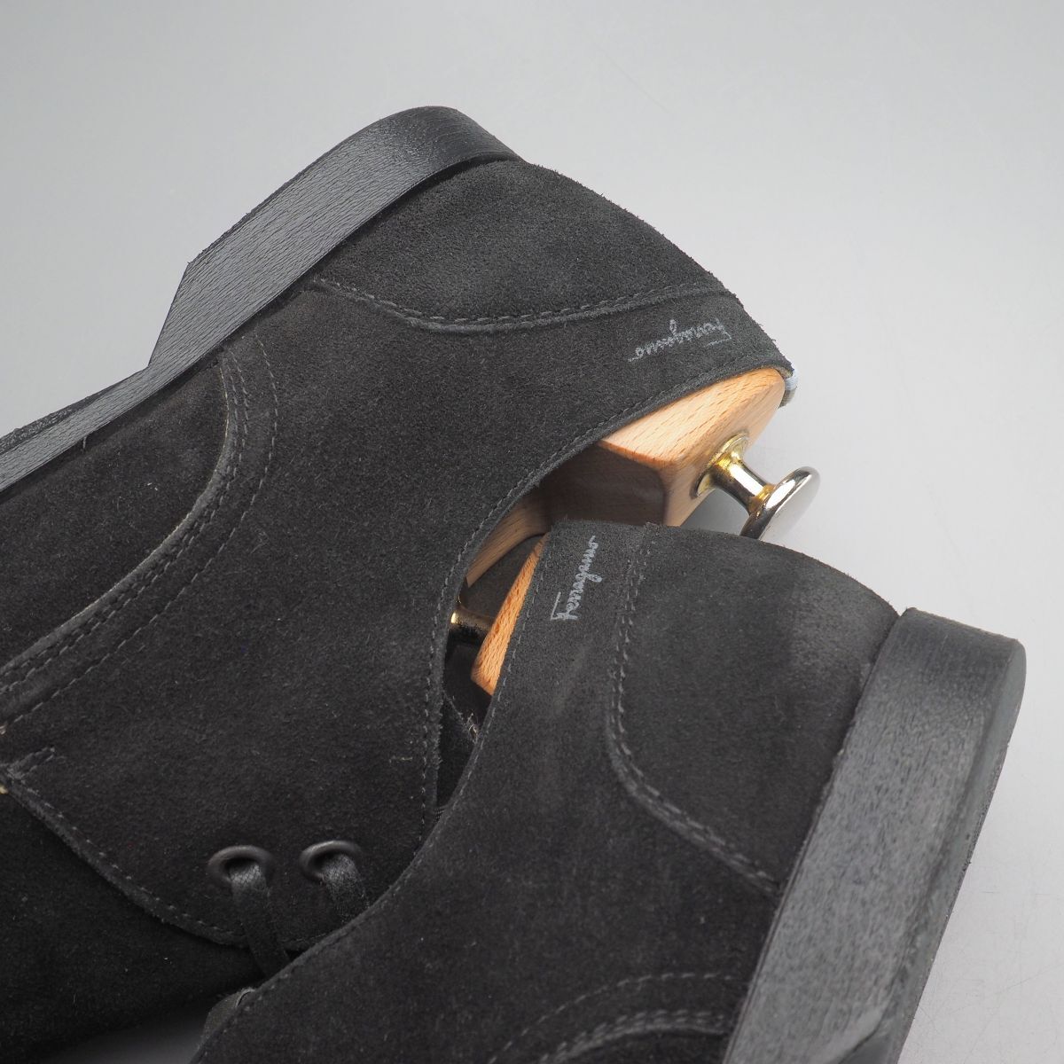 1927年にシューズブランドとしてスタートしたイタリアを代表するラグジュアリーブランド「サルヴァトーレフェラガモ」の一足です。 ソフトで滑らかな手触りを持つ黒のスウェードレザーをアッパーに用いたプレーンフロントの2アイレットダービー。 アウトソールには屈曲性の良いラバーソールが装着され、履き心地もストレスなく快適です。 アウトソール:ラバー 生産:イタリア製 ※撮影用のシューキーパーは付属致しません。 ※本物の商品ですのでご安心の上オークションをお楽しみ下さい。 ※タイトル頭の英数字は弊社の管理番号です。 ※ほかにも多数の商品を出品しています。 ※同梱に関しましては「まとめて取引」でのみ対応可能です、その他の方法での同梱対応は出来かねます。 (※商品の特性上、同梱対応出来ない商品もございますので予めご了承下さい。) |