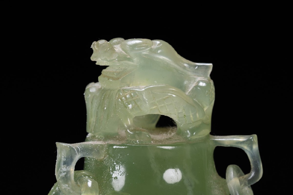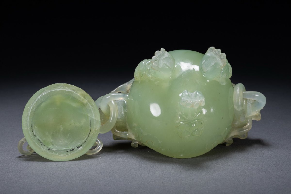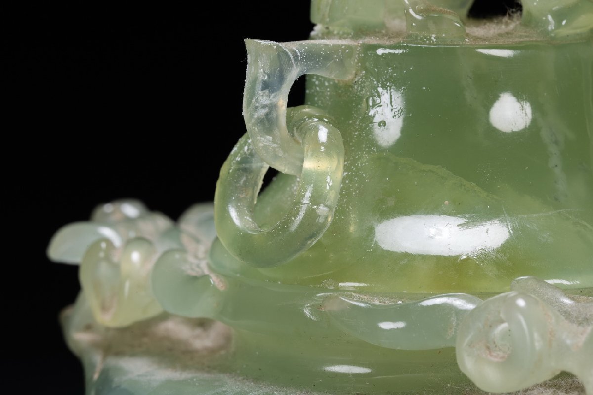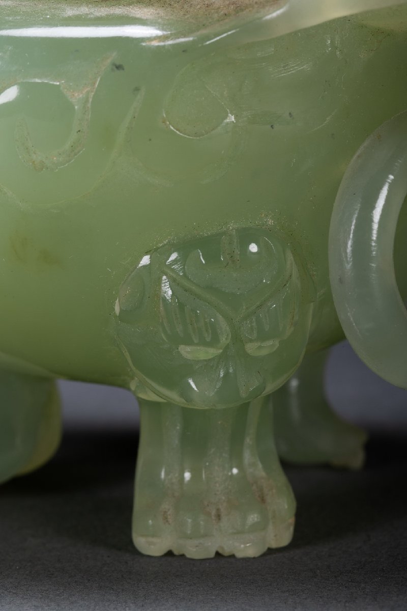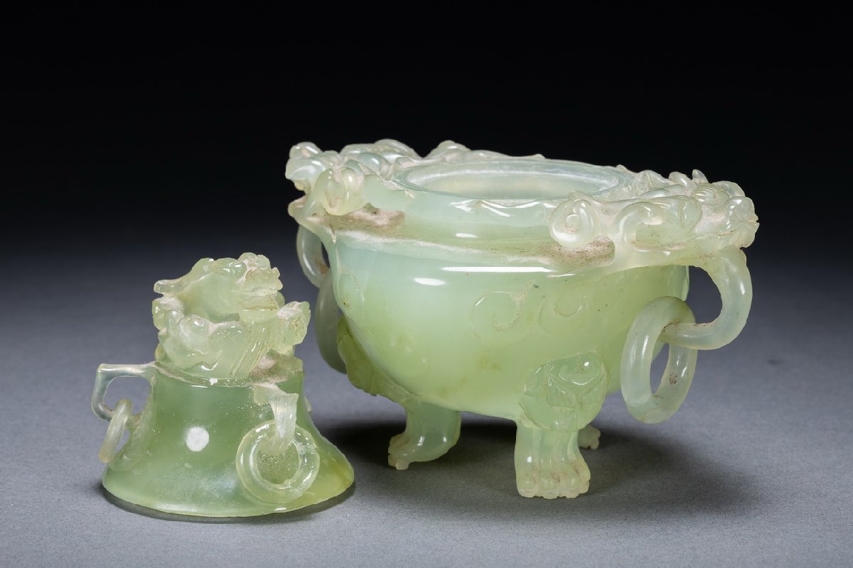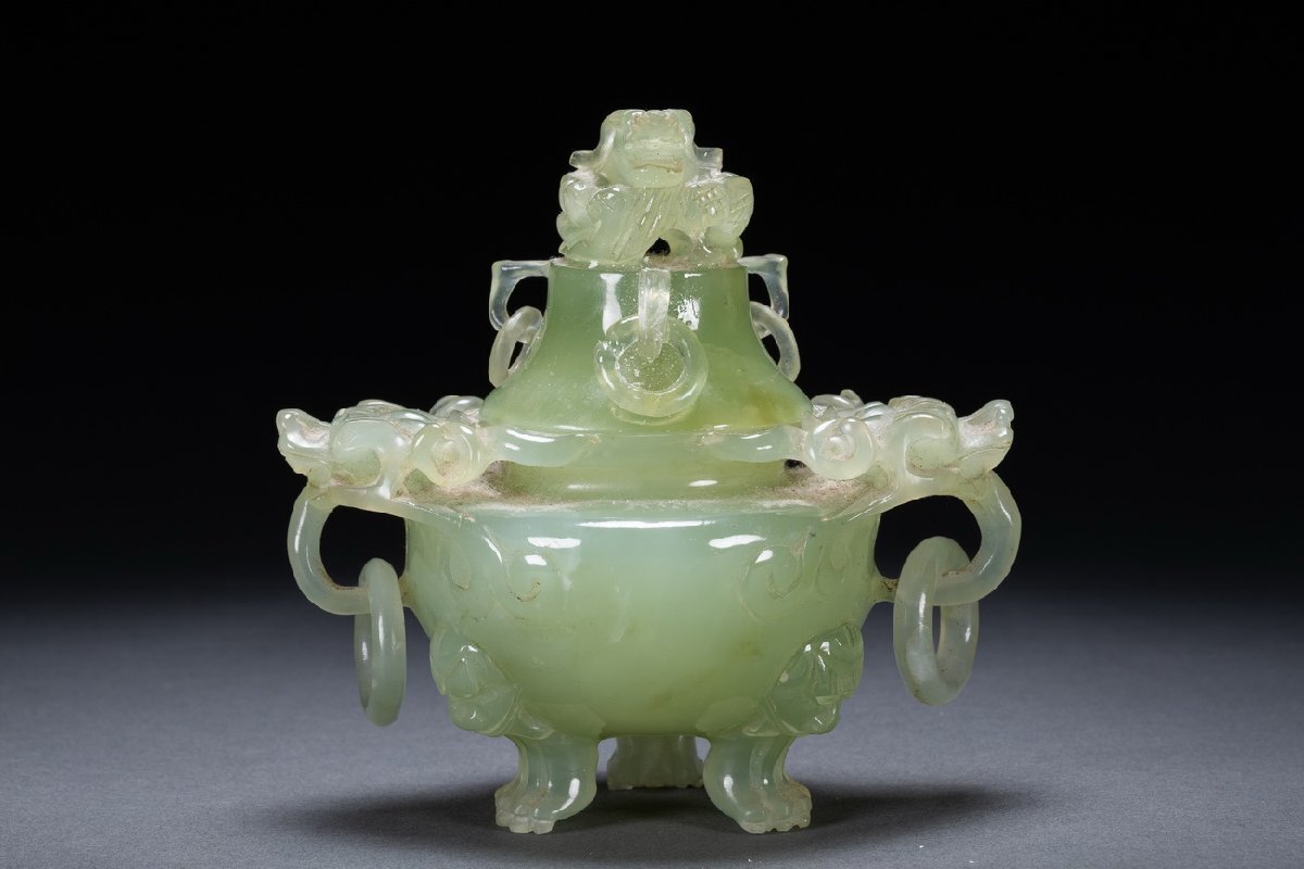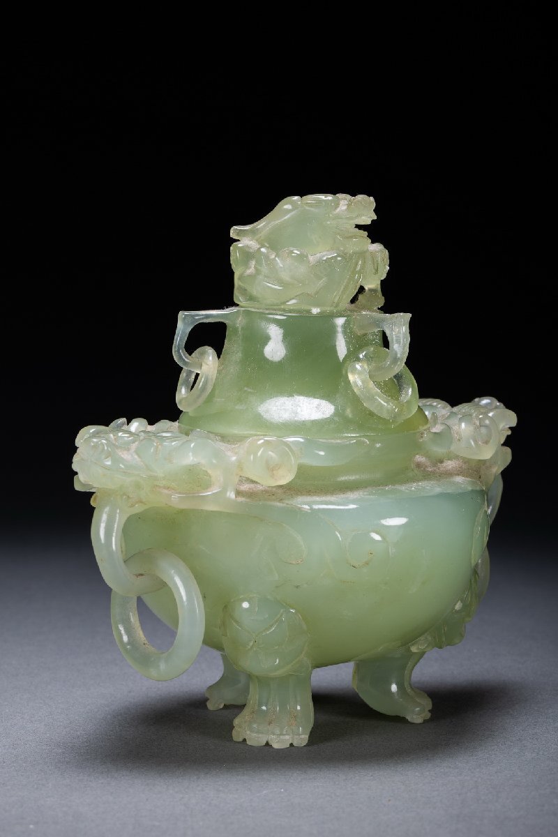 【雲錦】某有名オークション購入 時代物 天然碧玉 三足双龍耳香爐 修復あり 古置物 古擺件 古美術 時代コレクション7L10-62S07