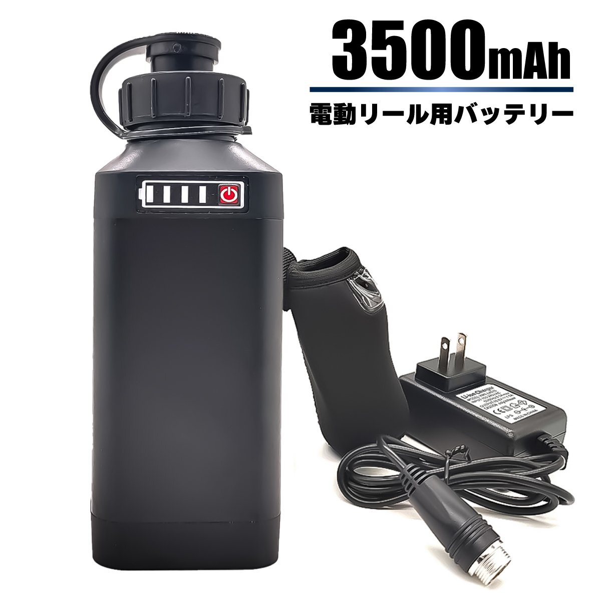・本製品はリチウムを使用しております。高温になる場所や湿度の高い場所での使用、保管は避けてください。 ・本製品を火気のそばで使用しないでください。 ・使用中は必ず専用カバーをしてご使用ください。 ・防水仕様となりますが、水洗い、水分が付いた状態での使用、保管は厳禁です。必ず拭き取りをし適切にご使用ください。 ・仕様表をよくお読みの上、適正な電圧・電流範囲内でお使いください。 ・バッテリーの残量が少なくなると、電圧低下によって電動リールの巻き上げスピードや強さに変化が起こったり、接続機器の動作に変化が起こる場合がございます。 |