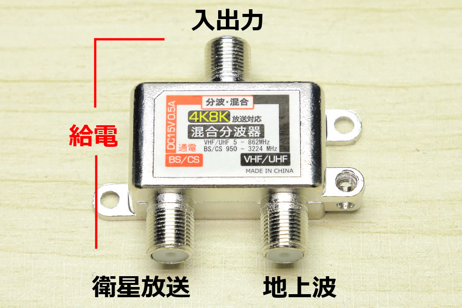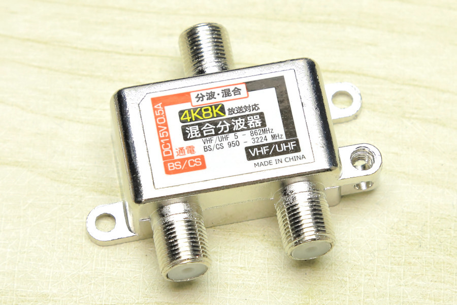 | 4K放送 8K放送対応 アンテナ混合分波器 衛星放送と地上波を混合分波 VHF・UHF/BS・CS 地上波用アンテナ(地デジ)からくる電波と、パラボラアンテナからの衛生放送の電波を |