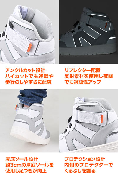 | ●歩きやすさ+ライディングのしやすさを追求。急な雨でも安心なスニーカースタイルの防水ライディングシューズ。着脱が容易なリールシステムとアンクルベルトで、好みのホールド感に調節できます。くるぶしにはプロテクターを内蔵。足首後ろは歩きやすいアンクルカット。夜間の視認性アップのため、パイピングは反射素材を採用。ソールはフラット形状ながら滑りにくく、インソールはパンチングタイプを採用し、防水仕様による蒸れやすさを低減。甲高幅広が多い日本人に適した2E相当の幅広設計です。 ■仕様 ・カラー:ホワイト ・サイズ:24.5cm ・素材:アッパー - PU/ナイロン/防水フィルム ソール - 合成ラバー ※アッパーとライニングの間に防水加工を施してあるため、急な雨でも水の浸入を防ぎます。 ※完全防水ではありません。 ※サイズ・色交換は承れません。ご注文前に必ずサイズ・色をご確認下さい。 ※取り寄せ品 |