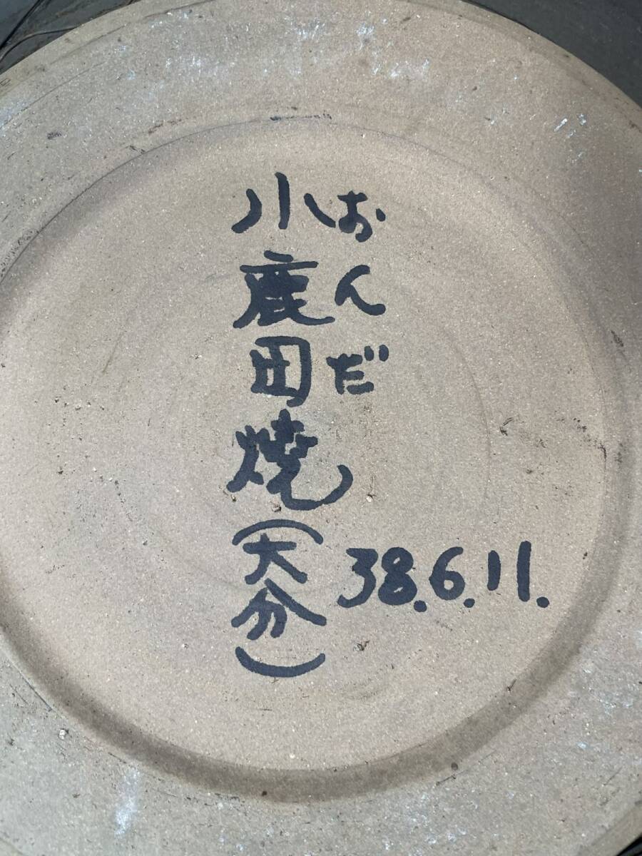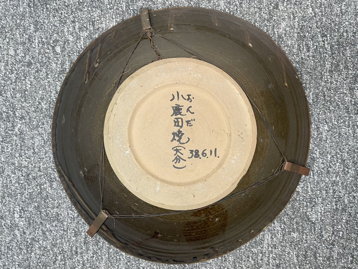 A682 小鹿田焼 飛び鉋 大皿 大分県 飾り皿 和食器 民藝品 伝統工芸 手仕事 民陶 昭和 レトロ コレクション