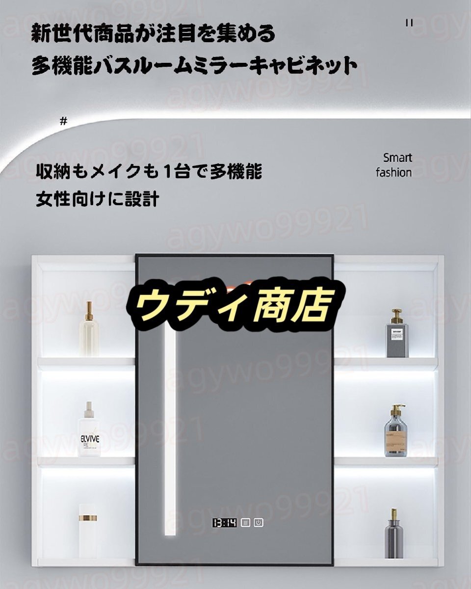 多機能壁掛けミラーキャビネット 浴室お風呂 鏡スマート調光機能付き LED照明ミラーキャビネット洗面所 浴室 ミラー 曇り止め浴室鏡 収納付き 多層収納 防水 ファッション 省スペース 簡単収納 (Color : 白 80*62*12cm ホワイト