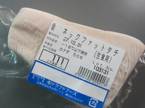 タテガミの部分で、見た目は真っ白な刺身ですがコラーゲンを多く含み、美容にもよい部分です。