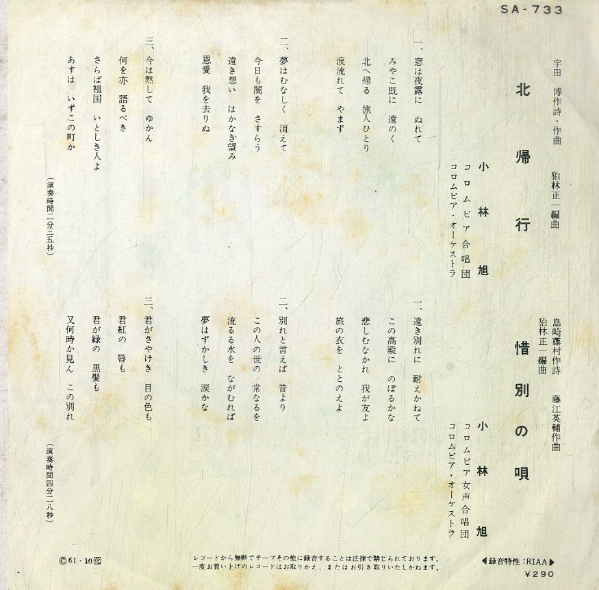 C00178856/EP/小林旭「北帰行/惜別れの唄」 [浏览原始页面]