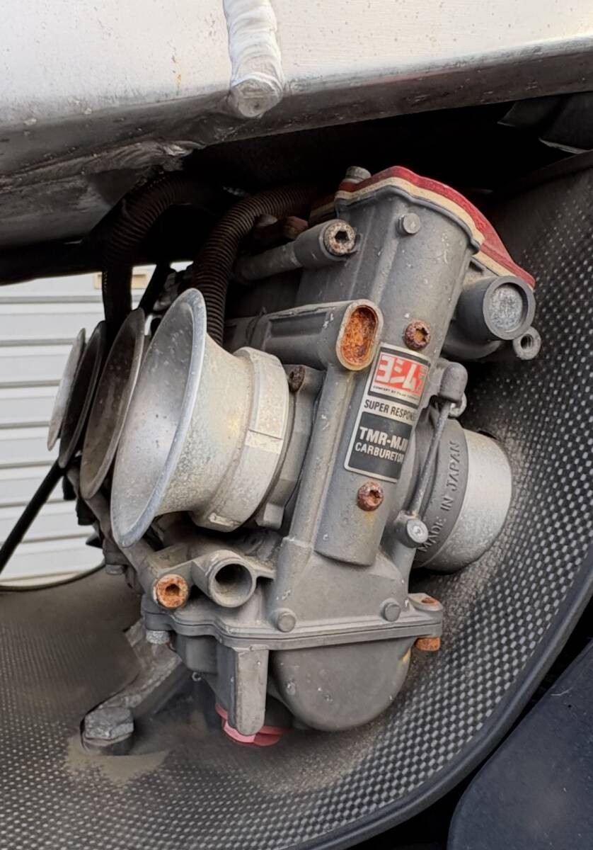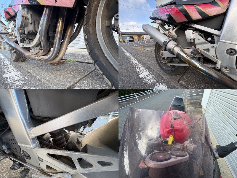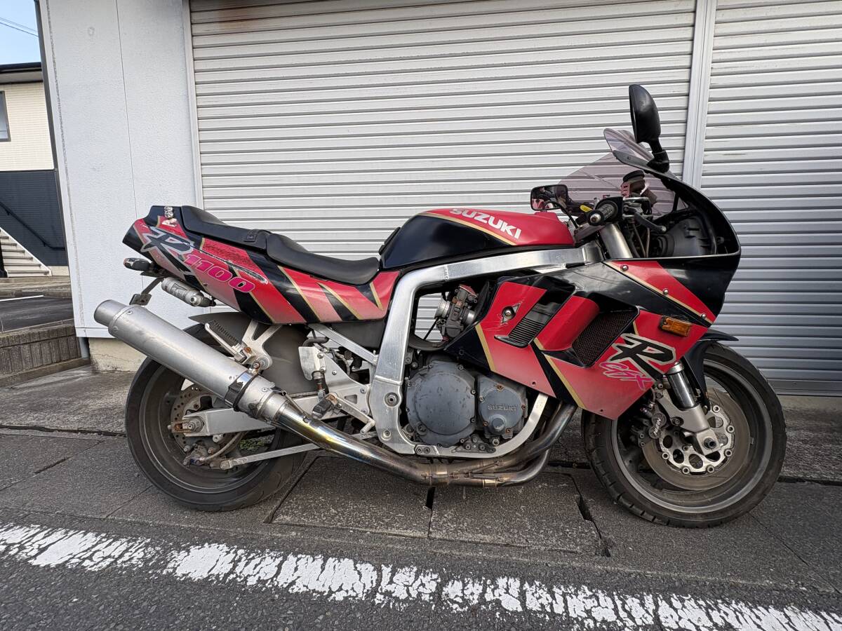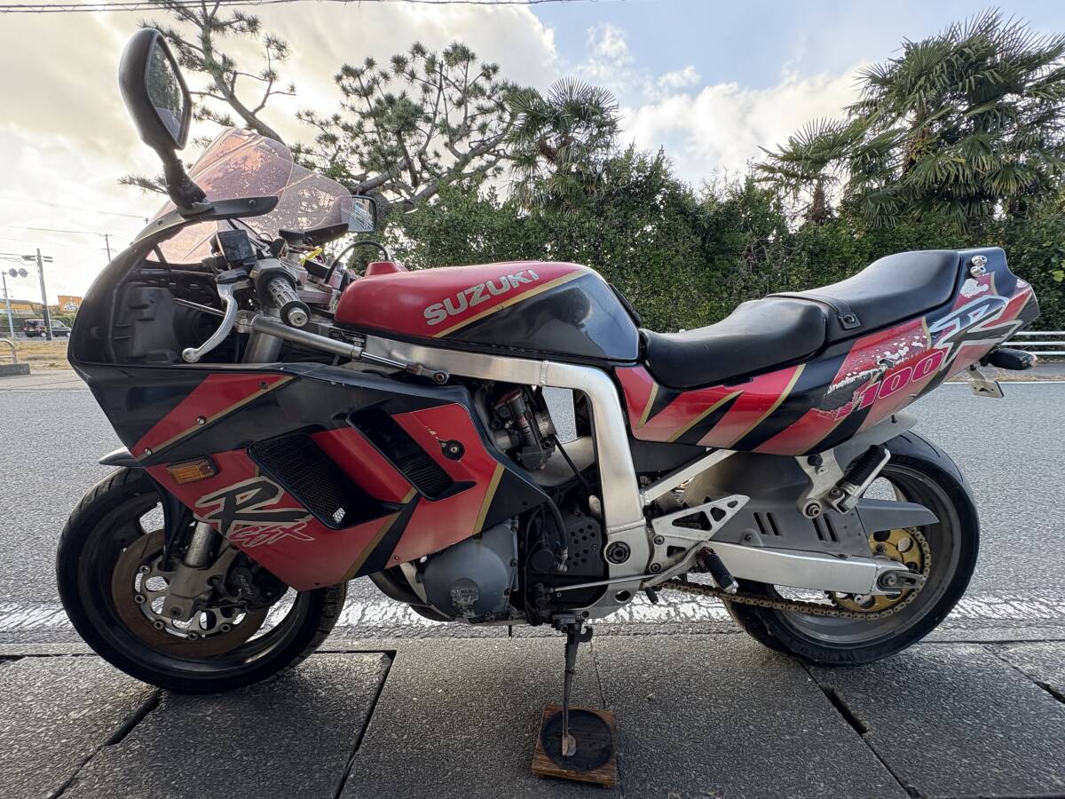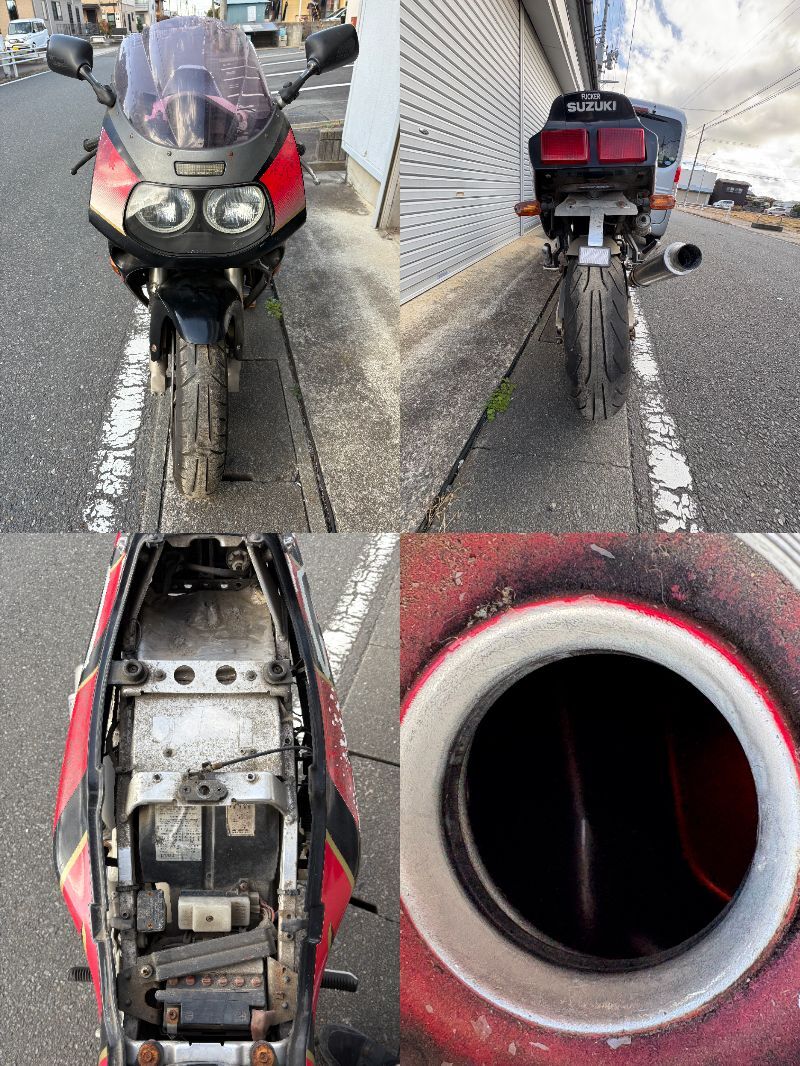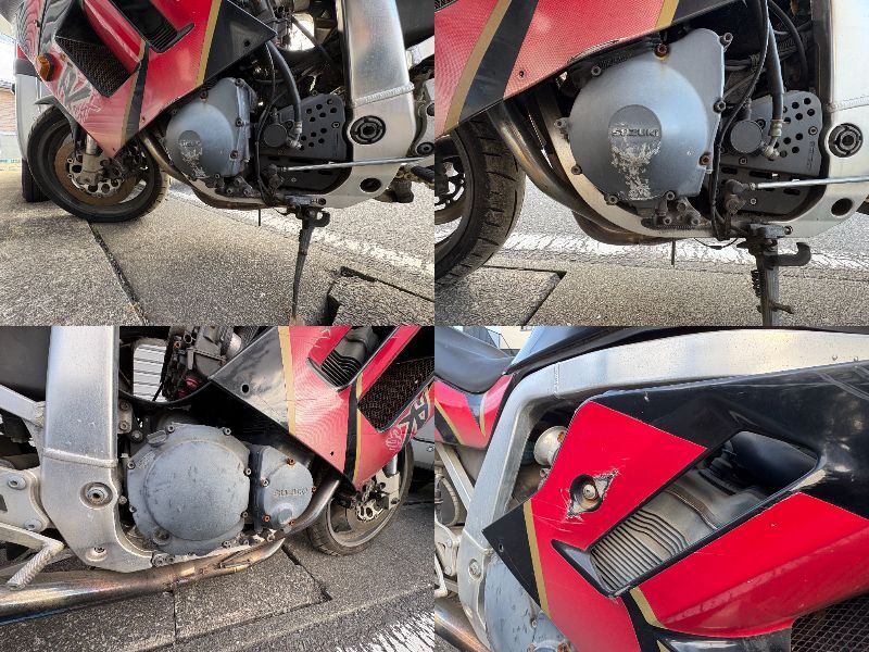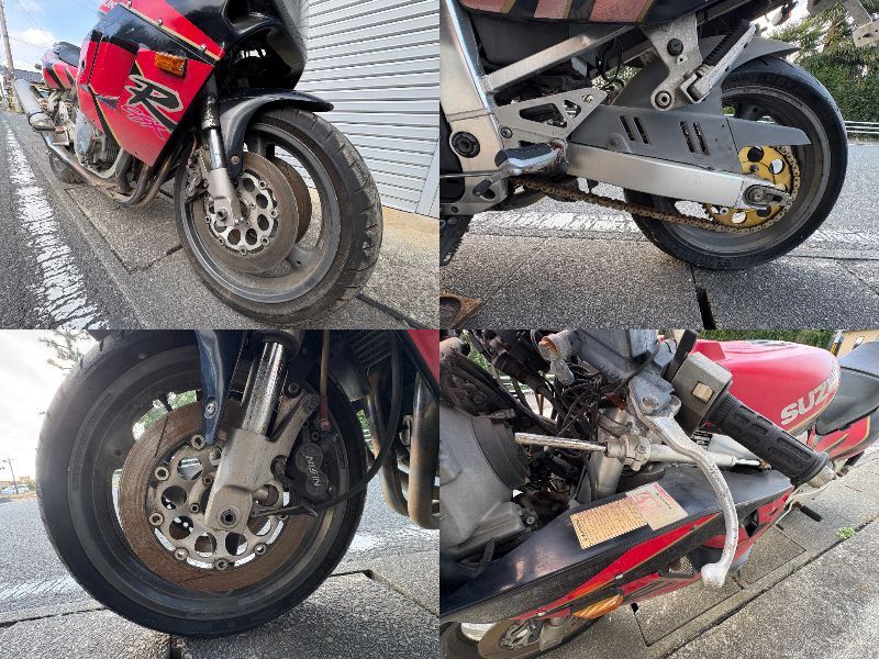 | ■商品名 スズキ GSX-R1100 レストアベース 部品取り用 ■付属品 自動車検査返納証明書 譲渡証明書 カギ1本 ■走行距離 38,570km(メーター読み) ■状態 エンジンは現在不動です。 外観は傷、錆、汚れ、色あせ、クラッチレバー曲がり等あります。 社外品いろいろついてます。キャブはヨシムラのTMR-MJNのファンネル仕様です。 カギは共通ですべて開きます。タンク内部は見える限り錆はございません。 不動のまま譲り受け長年倉庫にて保管しておりました。全体的に傷等多いです。不動車ですのでレストアベースまたは部品取りとしてご利用ください。 | ||