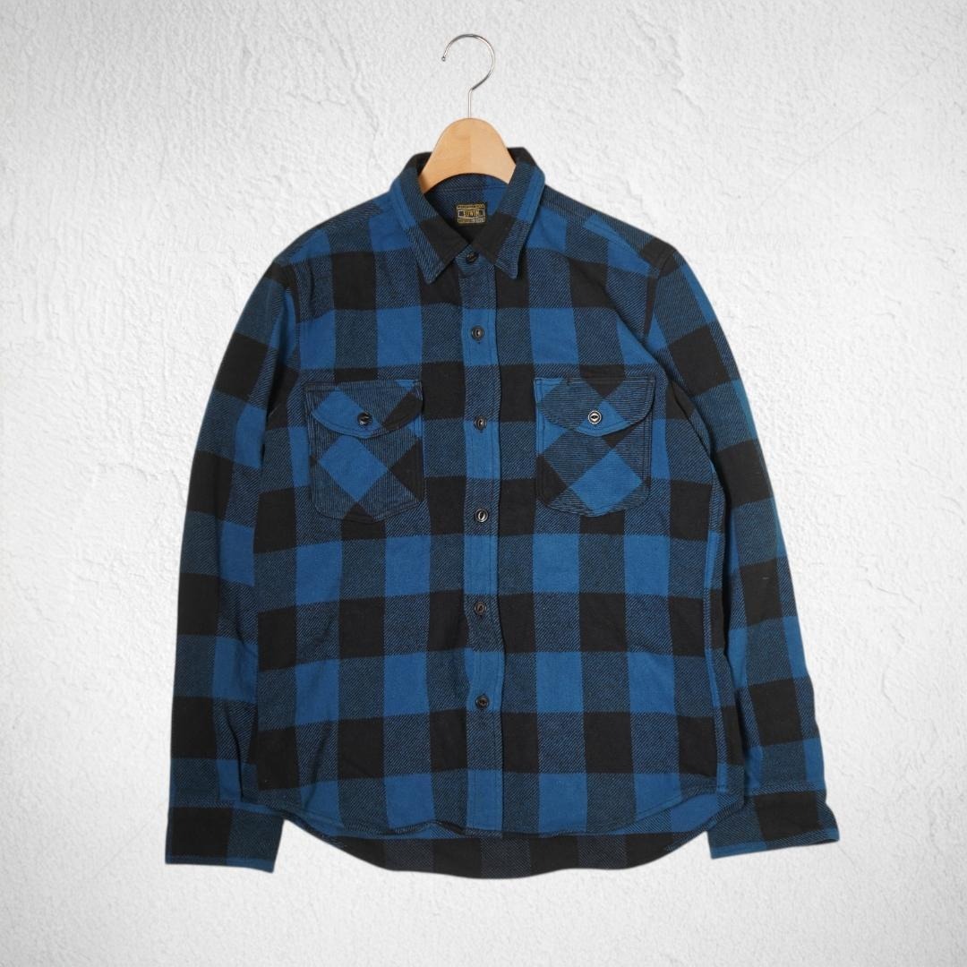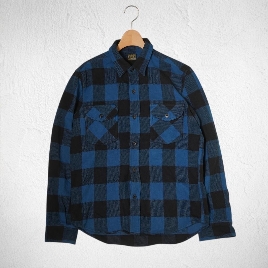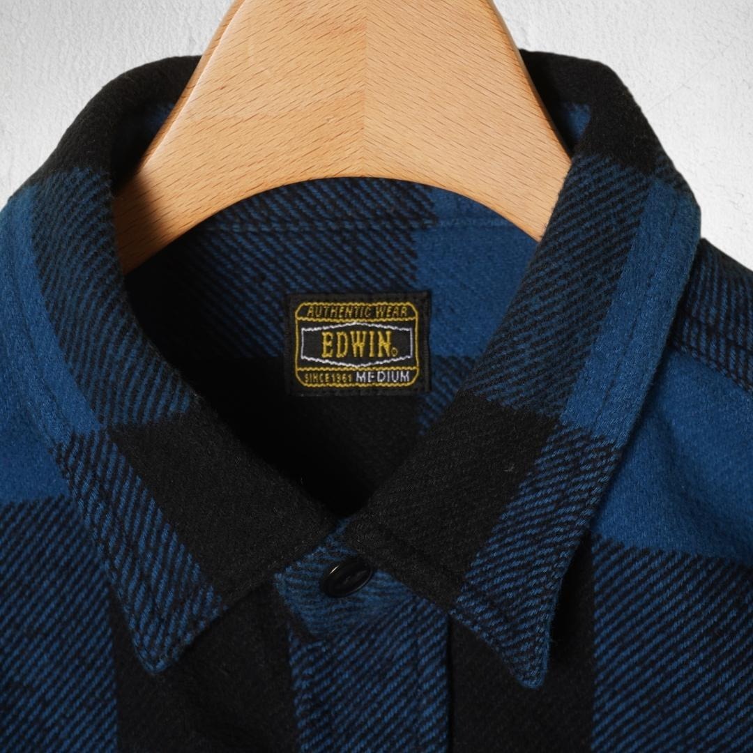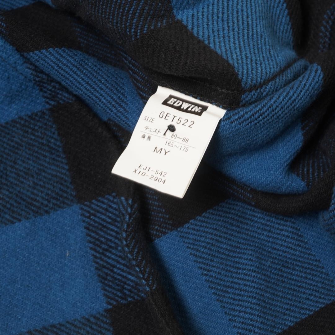 J148ね@ 1スタ EDWIN エドウィン ネルシャツ M ブルー チェック 長袖 厚手 カジュアル 秋冬 アウトドア 作業着 ワーク系
