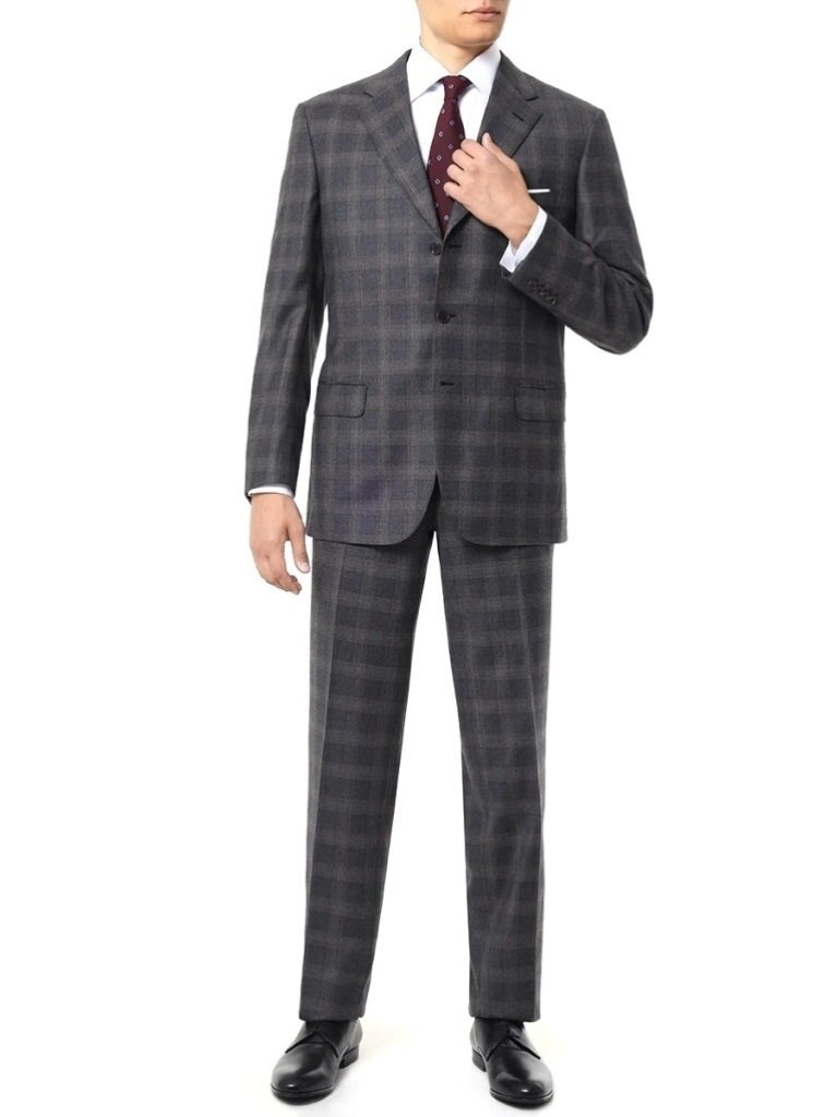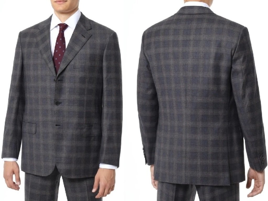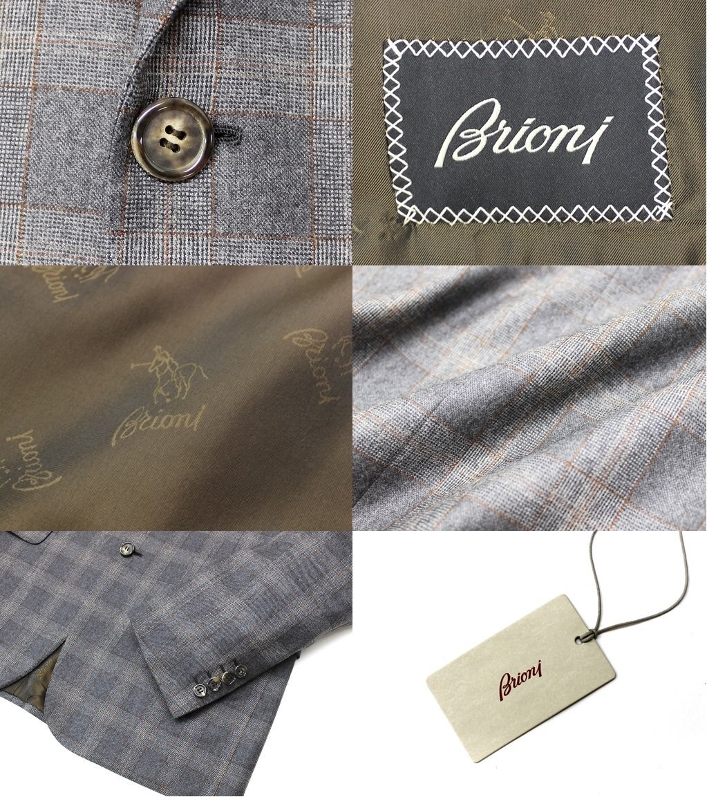 125万新品◆50=L×34インチ◆Brioniブリオーニ ヴァージンウールチェック柄3PCSスーツ BRUNICO THETA 濃灰ダークグレー