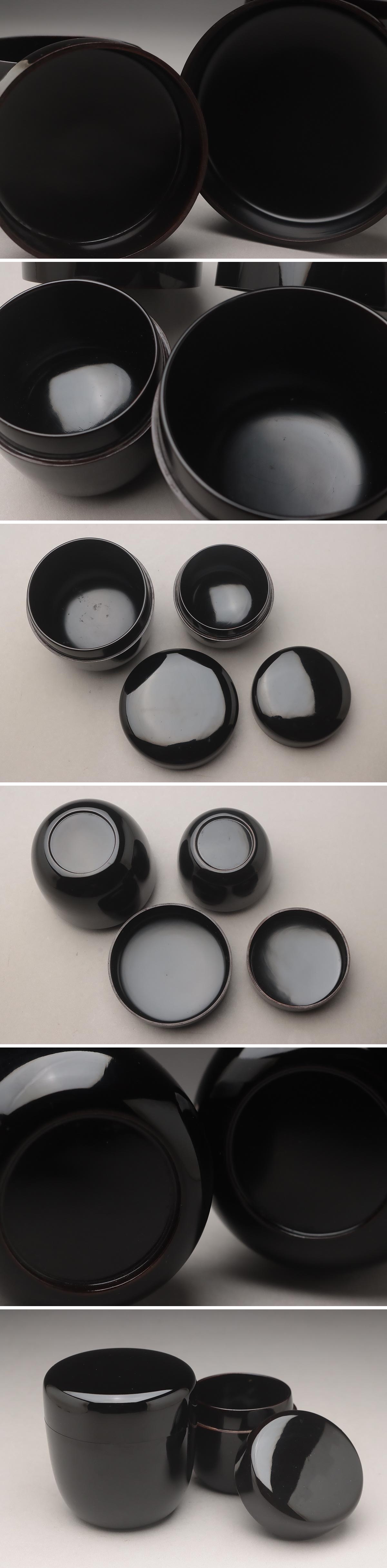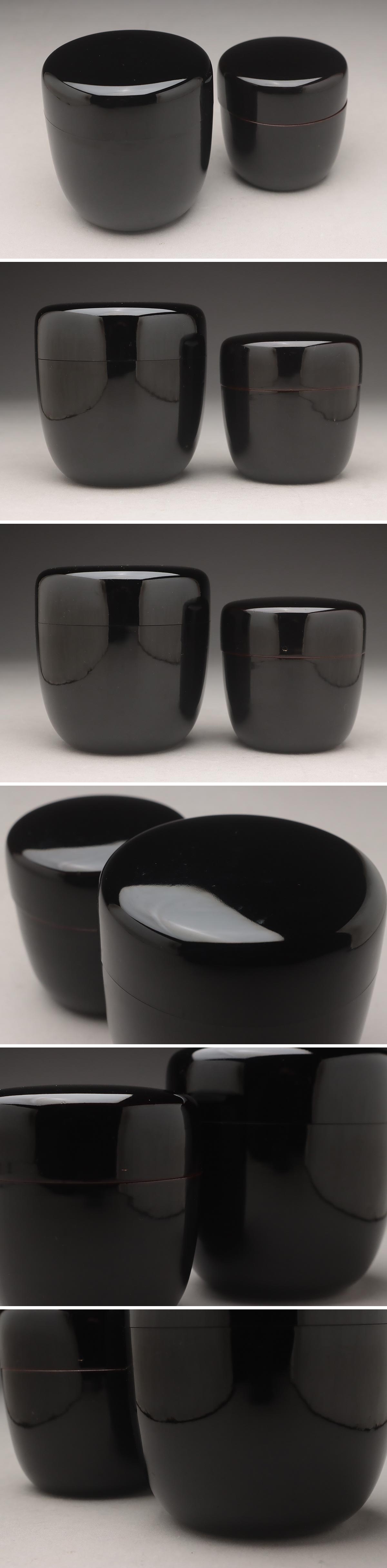 | ◆ 茶道具 黒漆塗 棗 二点 高8.3cm / 6.8cm・真塗棗・なつめ 茶器 茶具 漆器 漆工芸 ◆