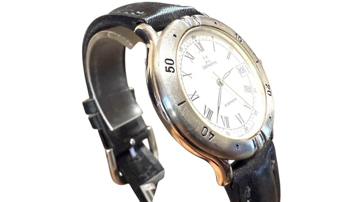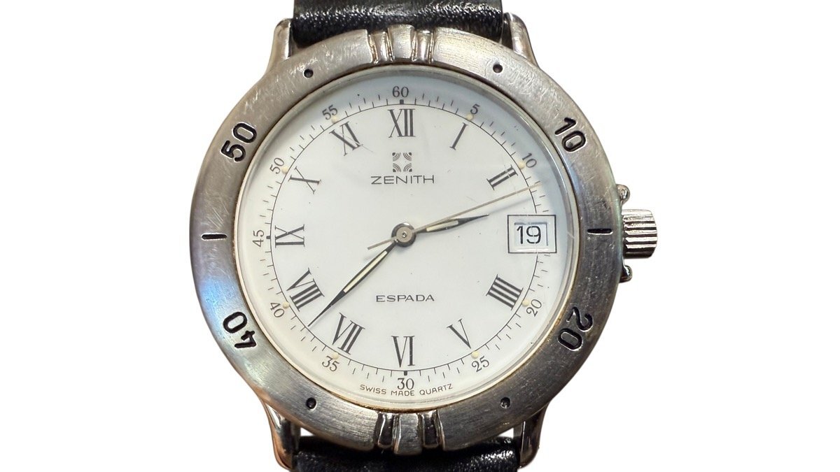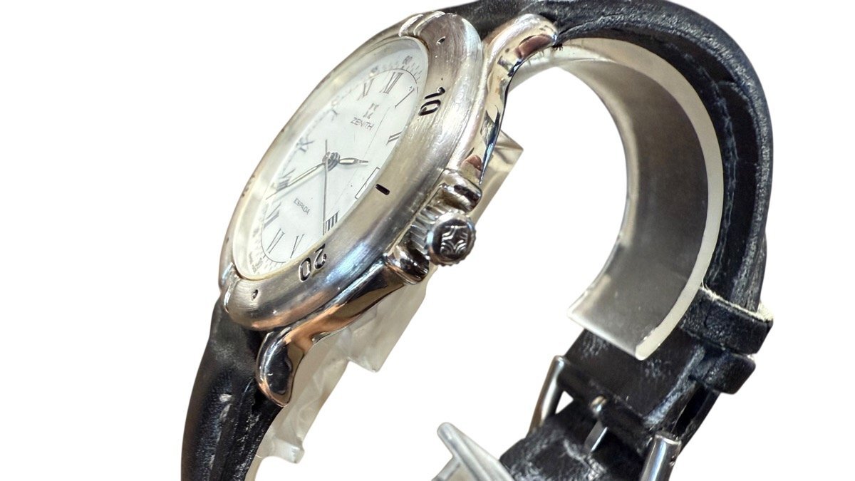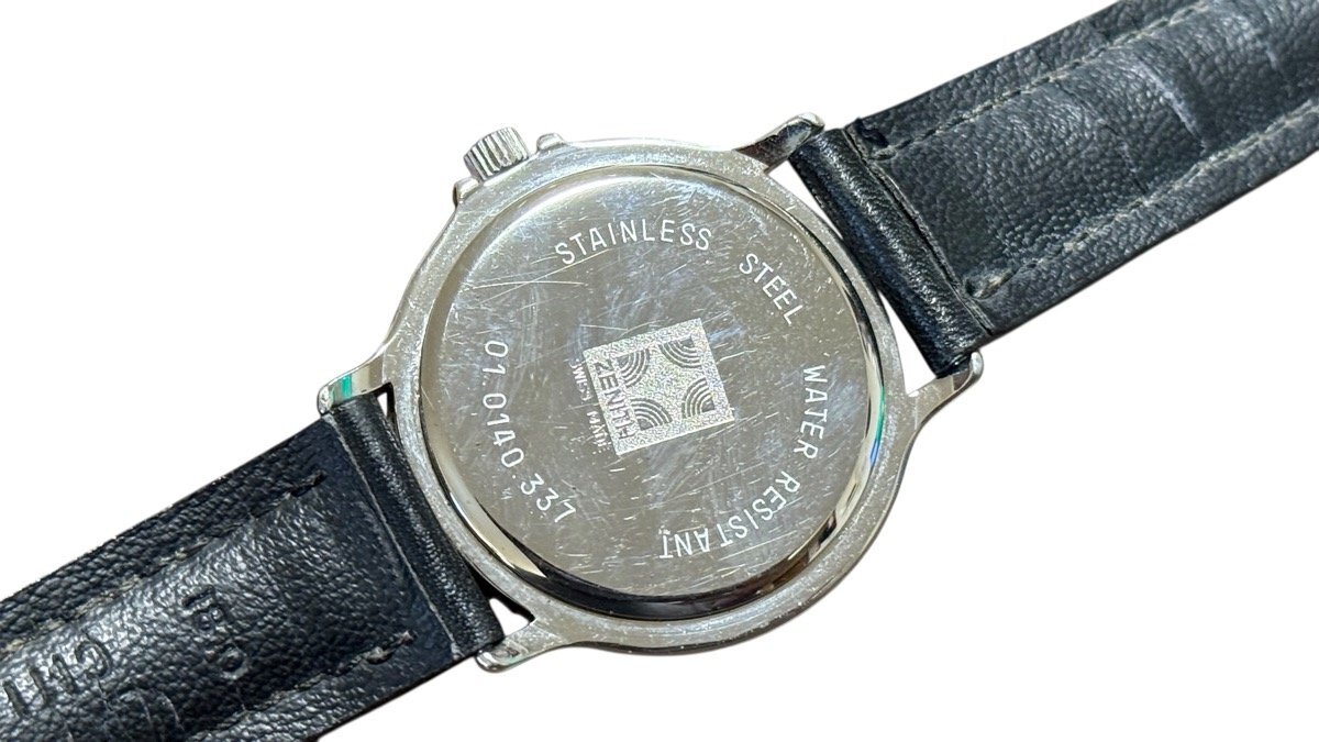 | ご覧いただきありがとうございます! 【ブランド】 ゼニス 【商品名】 腕時計 01.0140.337 ゼニスの腕時計です。シンプルに高級感を感じるデザインでとても素敵です!ゼニスのクロノグラフモデルは1969年のファーストモデルA386などの特徴的な要素を取り入れたアイコニックなデザインです。 ゼニスの時計ケースには、医療用メスにも使われる高品質な316Lステンレスが使用されており、錆びにくい特性があります! 【ムーブメント】 クオーツ 【サイズ】 フェイス35㎜ (リユーズは含みません) 【コンディション】 ランク『AB』 補足:動いています。現状でのお渡しです。小傷がありますが、そこまで目立たず比較的綺麗な印象です。