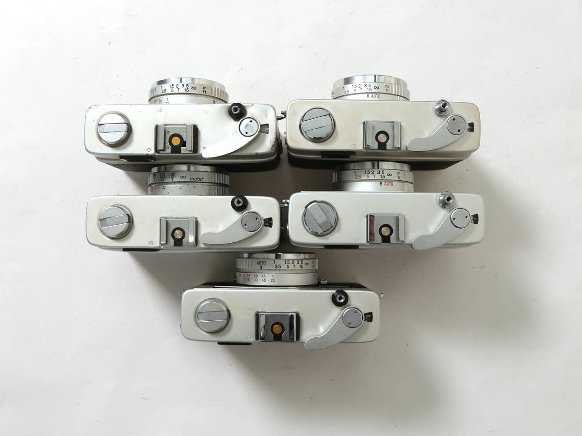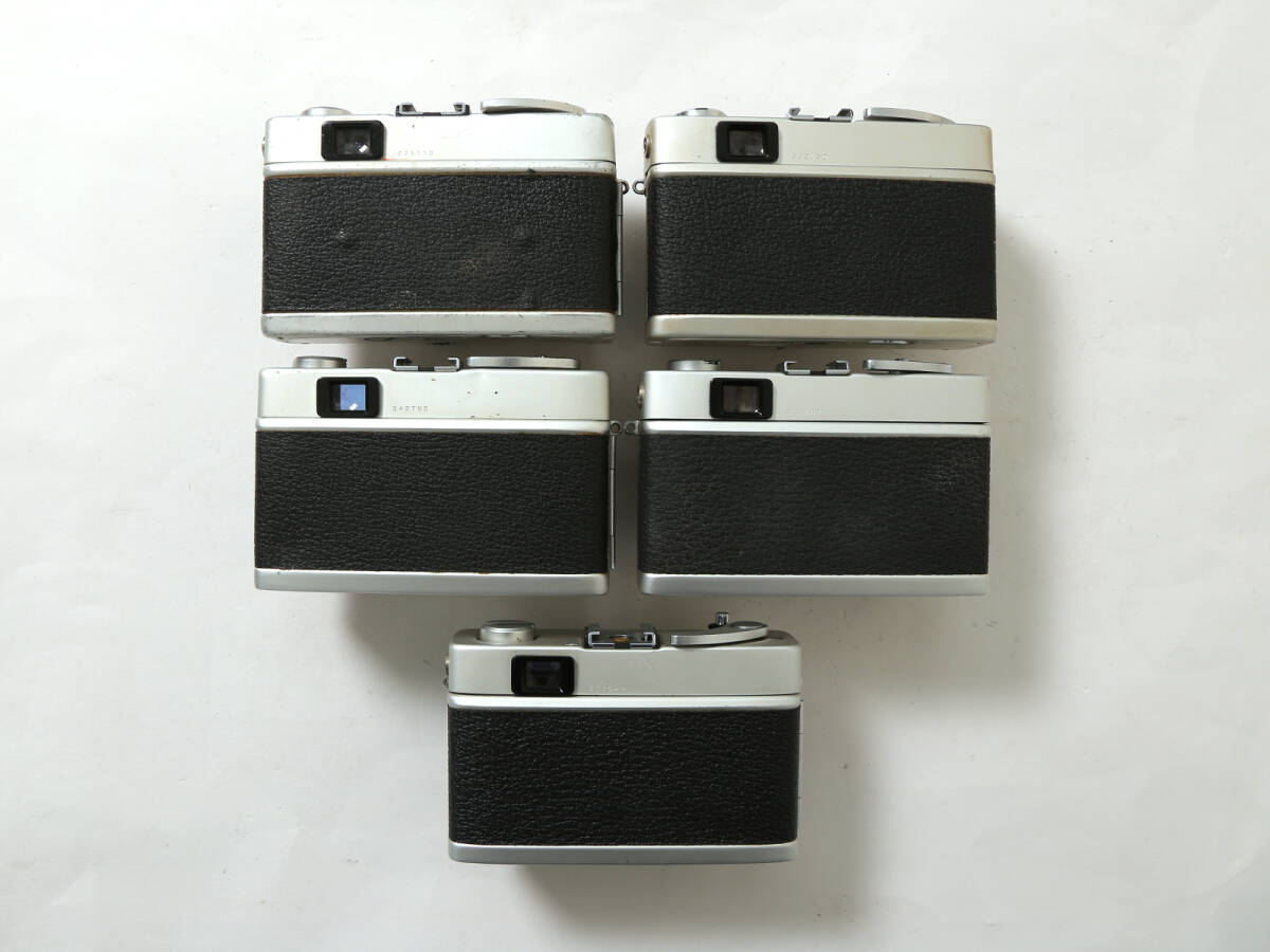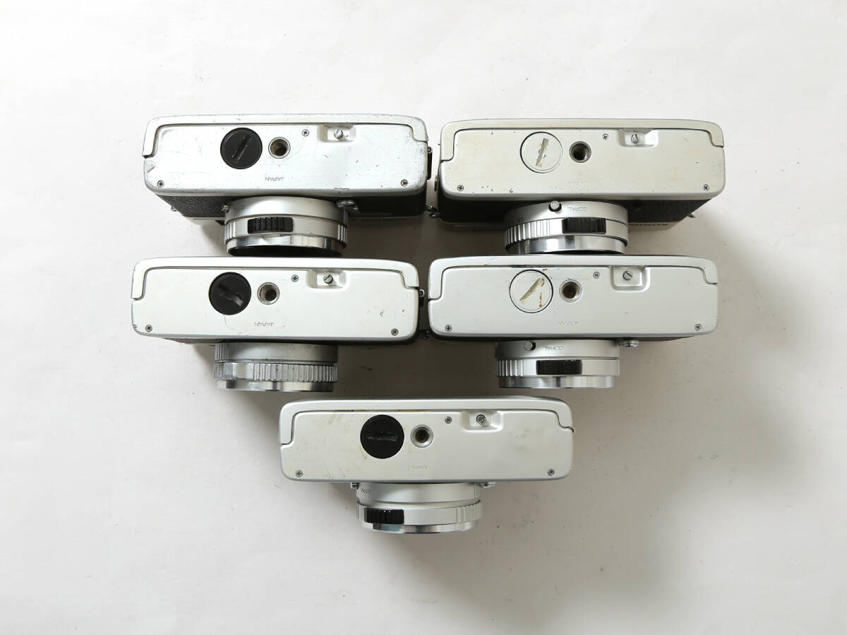 <外観2> KONICA C35 E&L 1台が電池室の蓋が開かない状態となっております <動作1>5台中4台の巻き上げとシャッター動作の簡易チェック動作確認済み <動作2> 簡易動作チェックの為、ジャンク品での出品となりますので一切の動作保障は致しません <注意1> 発送時の梱包は簡易包装での発送をさせて頂きますのでご了承下さい |