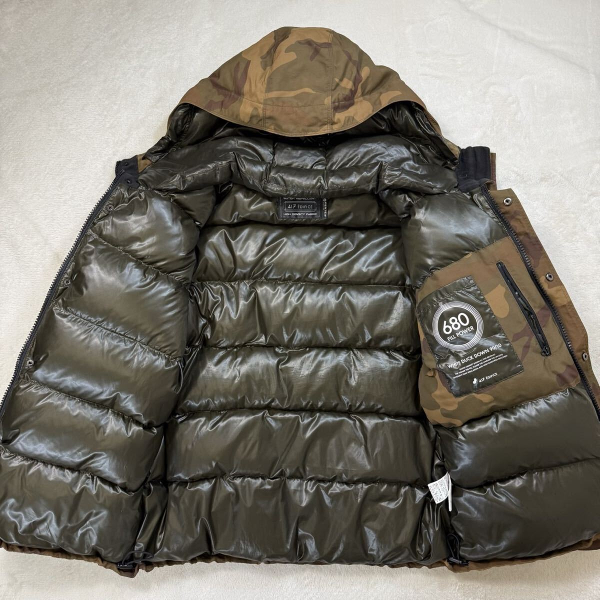 未使用級 《高級ダウン90%!希少Lサイズ》 417 EDFICE pertex ダウンジャケット 極暖 迷彩 カモフラ アウター メンズ ブルゾン 撥水加工