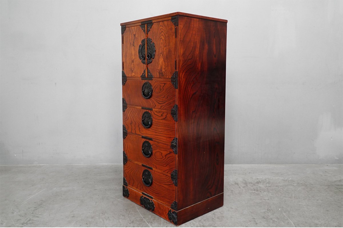伝統工芸「岩谷堂箪笥」開き扉付き4段整理箪笥 衣装 着物 欅 漆 南部鉄器 和家具 最高峰 時代 和タンス 鍵付き021115