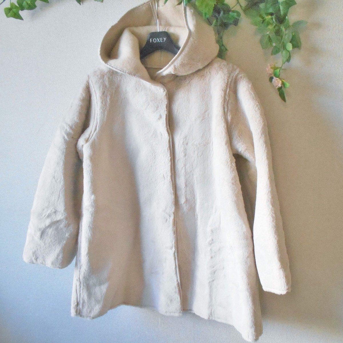 【ポイント】サマンサモスモスのフード付きコートになります。お色はキナリで、毛布のようなソフトな肌触りです。