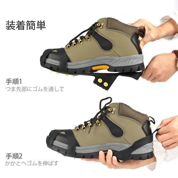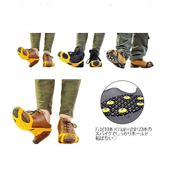 ◆急な降雪に即対応できる! ◆スニーカーやビジネスシューズに、取付け簡単! ◆いつも履いているシューズに装着するだけ! ◆ラバー部分も強力素材! ◆カンジキ・アイゼン等より気軽に使用できる! |