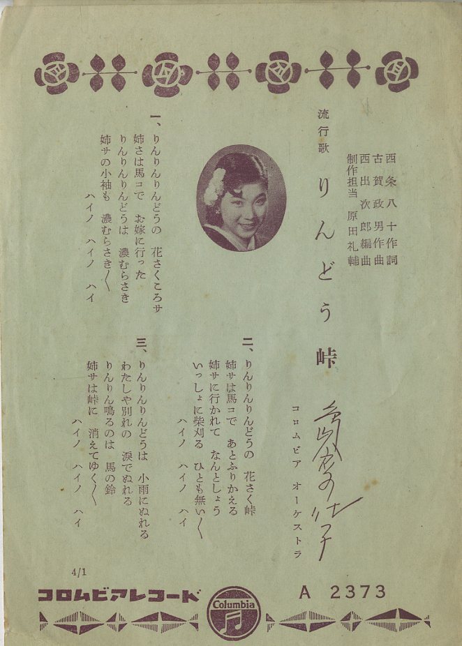 K00043761/SP/島倉千代子「りんどう峠 / 布良の娘 (1955年・A-2373)」 [浏览原始页面]