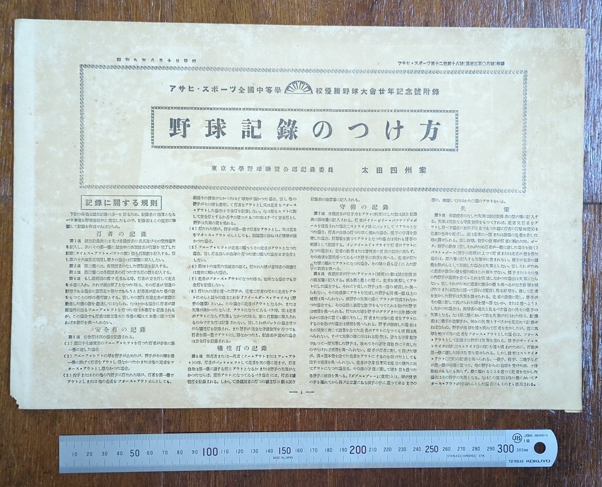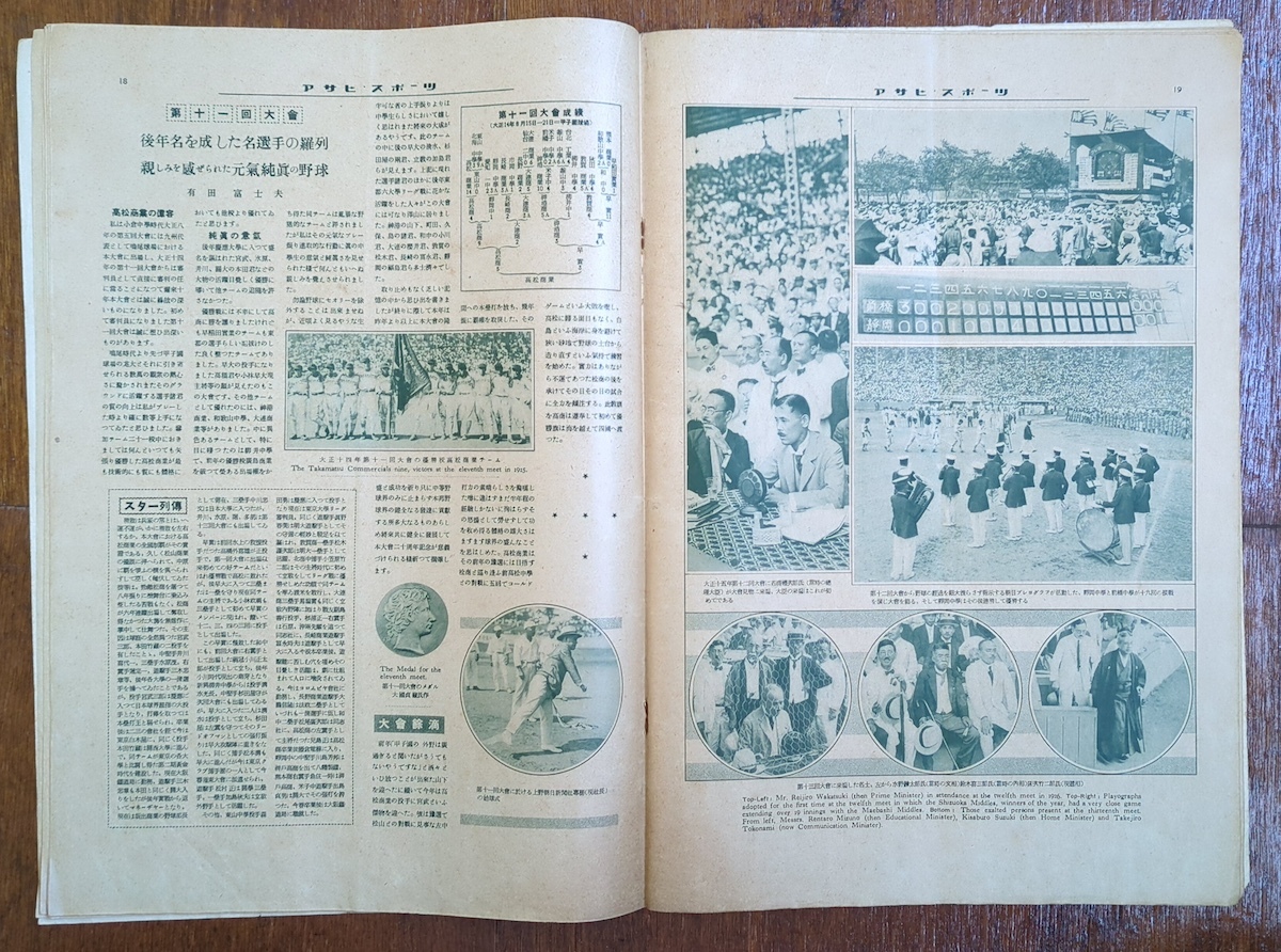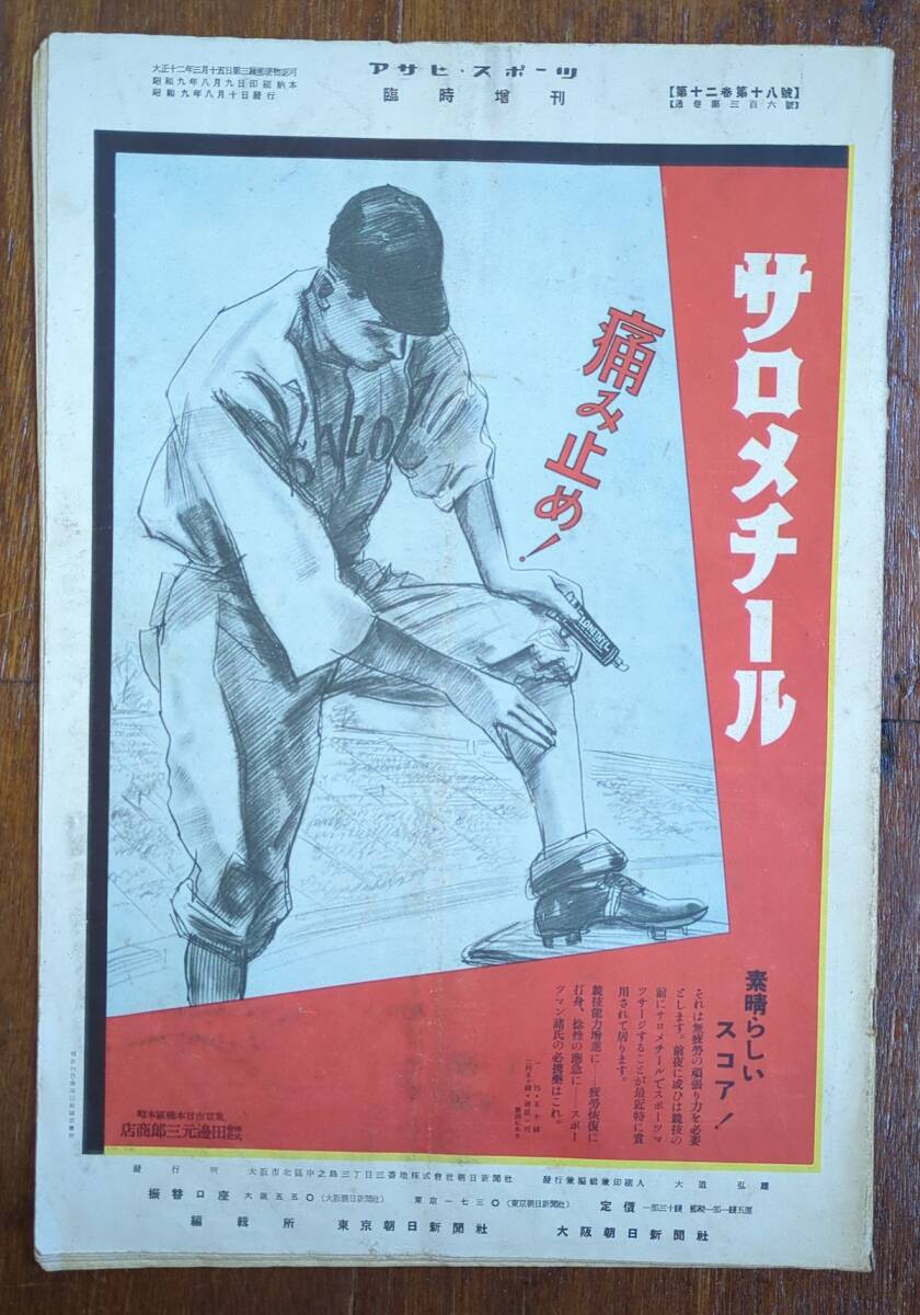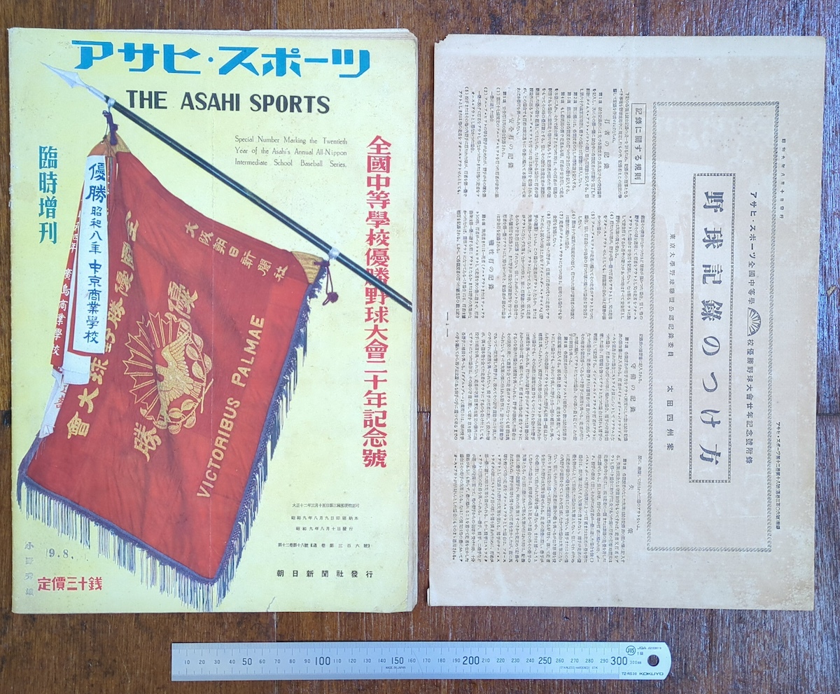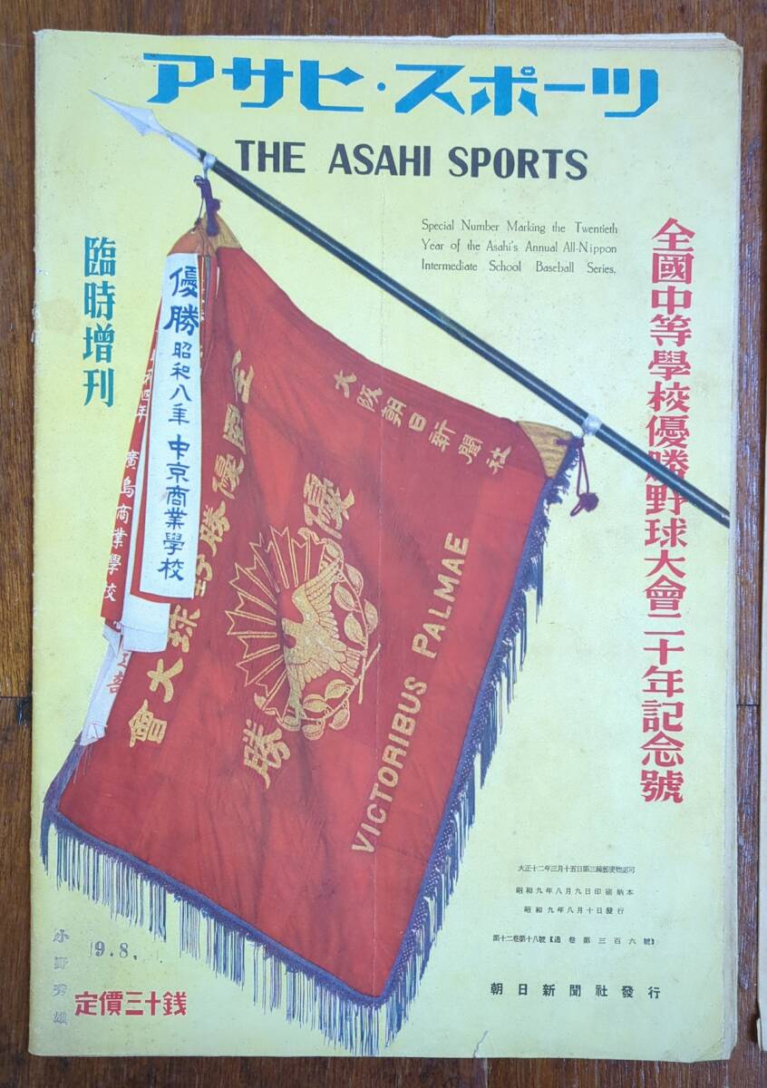 雑誌 戦前 アサヒスポーツ 全国中等学校優勝野球大会20年記念号 付録付の完品 満州 朝鮮 台湾 高校野球 昭和9年 嘉義 大連商 支那事変