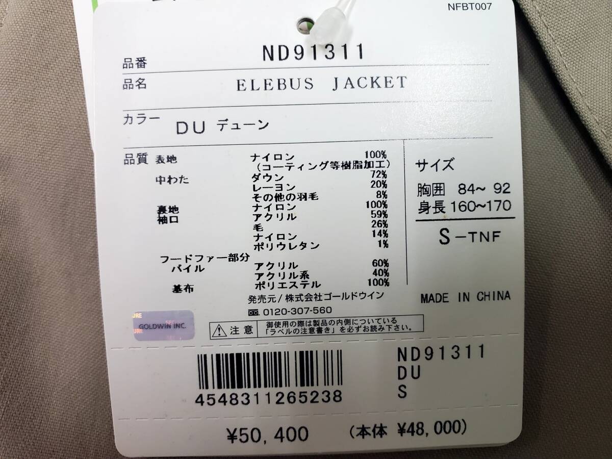 ★究極!未使用保管!タグ付いたまま!送料無料!ノースフェイスのエレバスジャケット!ND91311メンズ【S】★ダウンパーカです。フリース
