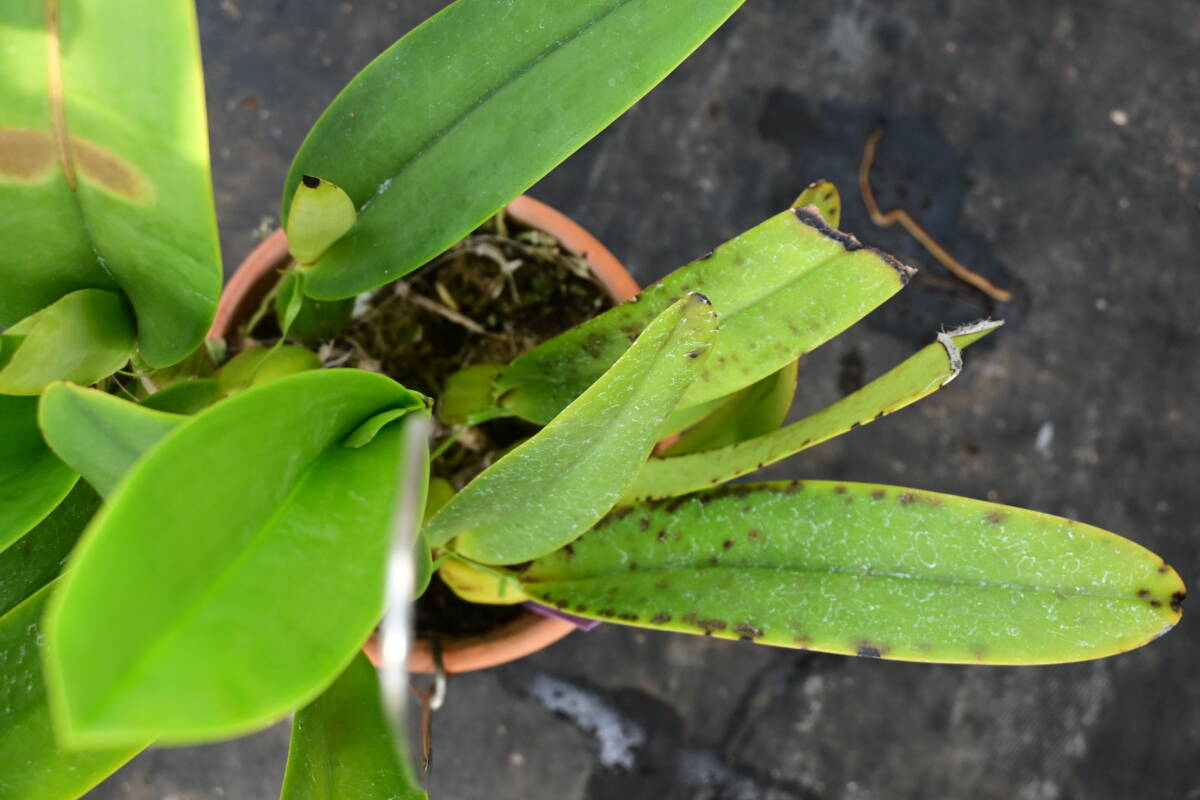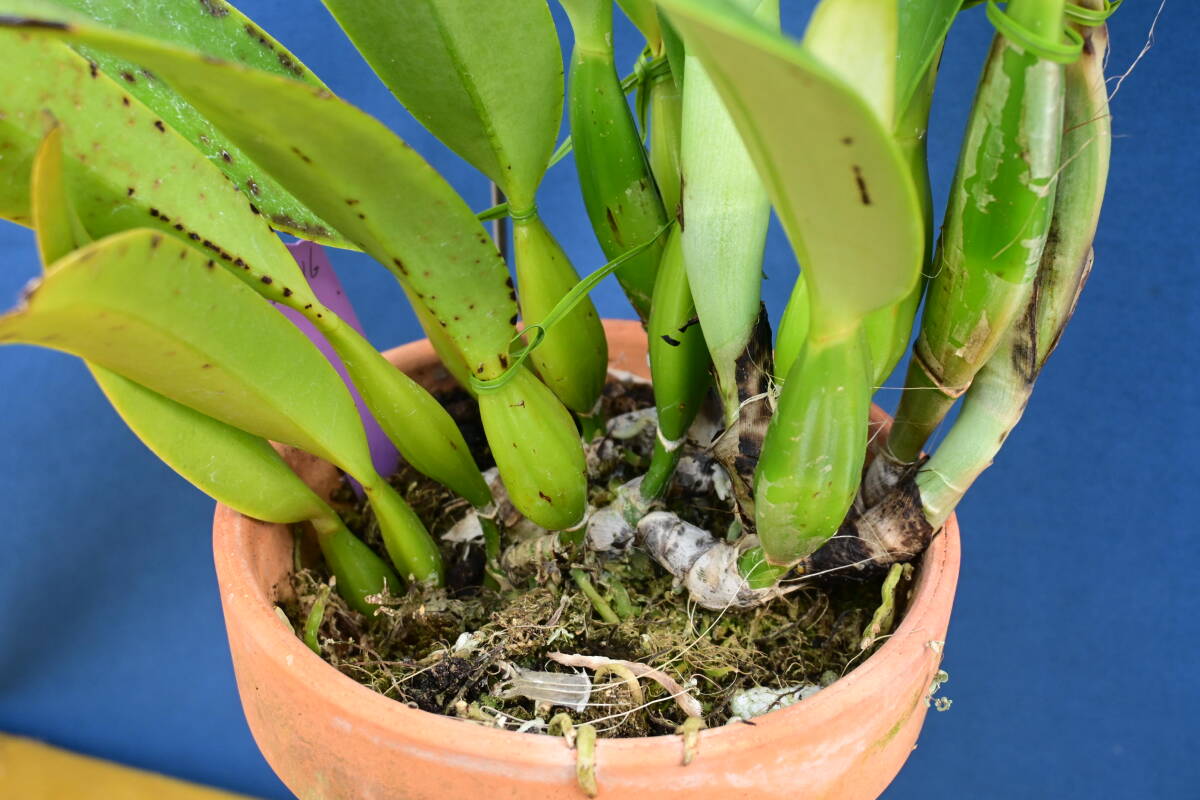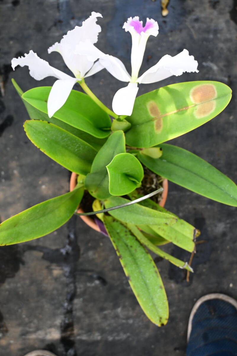 | (’La Perla’x’Turquesa’FCC/CCO)初花全株販売古い葉に黒点あり 12バルブ 2リード もう1つシ-ス有 4.5号鉢 100サイズ | 3000 |