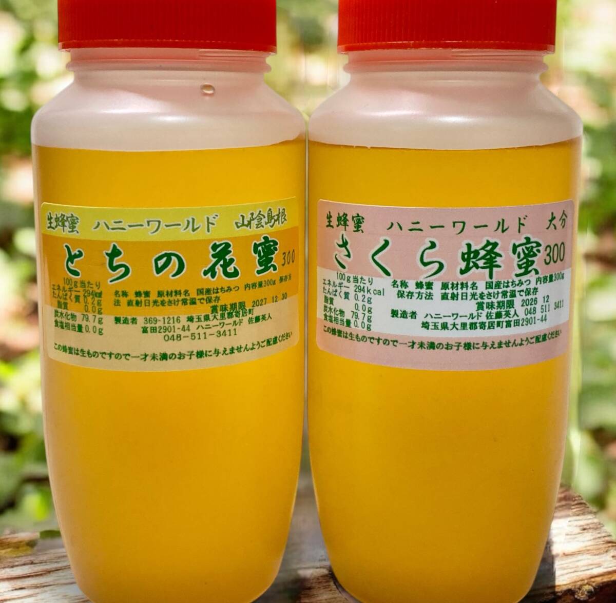 特選さくら蜜 特選とち蜜 国産ピュア生はちみつ 非加熱 各300g #生はちみつ非加熱 ご覧いただきありがとうございます。 おすすめの2本セットです。 ◎さくら蜂蜜 生はちみつ 大分 日本の花を代表する桜の花、ソメイヨシノ、山桜の花から採取される 蜂蜜です。とても繊細な味わいと、ほのかな桜の香りで日本らしさを 味わえる蜂蜜の一つです。さくらは初春の不安定な気温と 天候の影響を受けやすい繊細な蜂蜜です。 ◎特選 とちの花蜜 山陰島根 とち特有のフローラルな花の香りと木々の香りにはアロマ感が漂います。 芳醇な味わいと香りのバランスが際立ち、ほのかな酸味が特別な さわやかさを感じさせます。このタイプの、とちの花蜜はとても 希少です。 ビタミンやミネラル、アミノ酸などが豊富、疲労回復効果に期待です。 ☆1歳未満のお子様にはお与えにならないでください。 生はちみつについて 全国から集まる生はちみつは自然のものですので 同じ植物でも、産地、時期、流蜜状況によって 色や風味、糖度などが変わるものも多くございます。 ・生はちみつですので秋口から結晶が始まりますが そのままお召し上がりください。 ・湯煎する場合はあまり熱くない温度でゆっくり時間をかけ、 混ぜながら溶かしてください。 ☆ご要望は、お気軽にお問い合わせください。 購入前にお願いします。 ☆リクエストやご質問がありますときはプロフィール欄で金額、詳細を ご確認ください。 ・お値引き交渉・日時指定、お取り置きはご対応できません。 ・できるだけ早い発送を心がけていますが、都合で2~3日 かかることもございます。 種類...蜂蜜さくら1700円とち1700円送料分450円 個数...2個