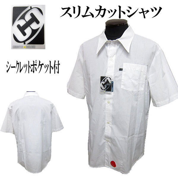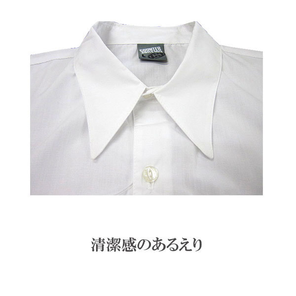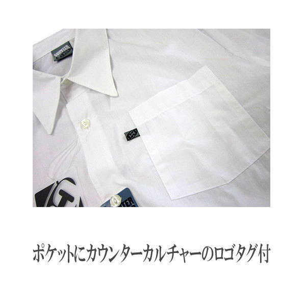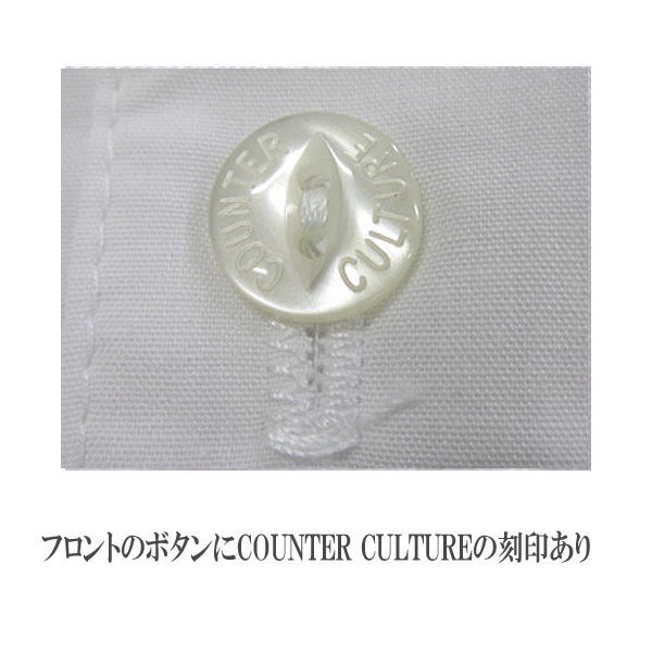 カウンターカルチャー スリムカット シャツ シロ (L)です ■素材 ポリエステル 65% コットン 35% ■サイズ(約cm) 身幅約57cm 丈約75cm 原産国 アメリカ製 アカのシールの所は裏にポケットがあります。 | ||||||
