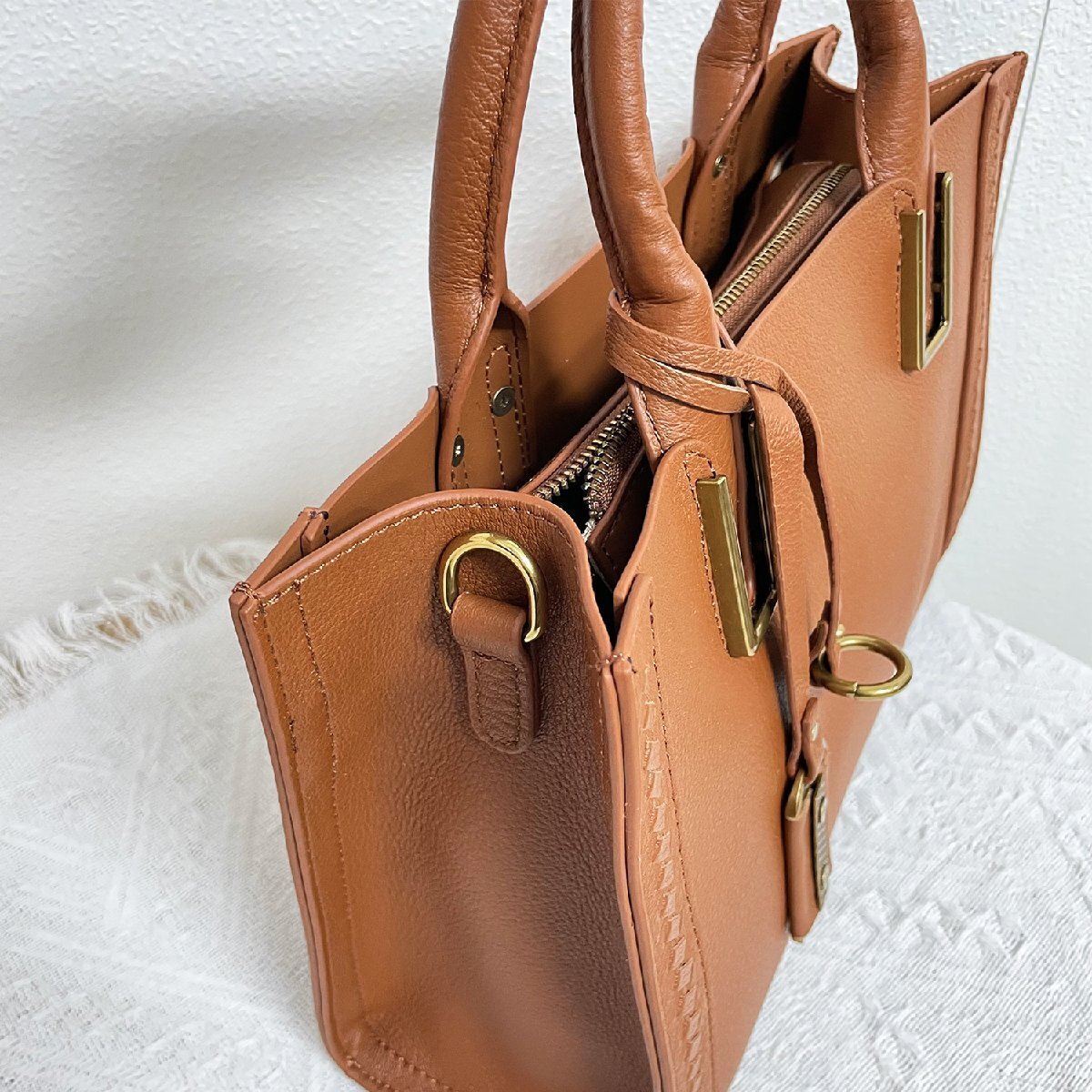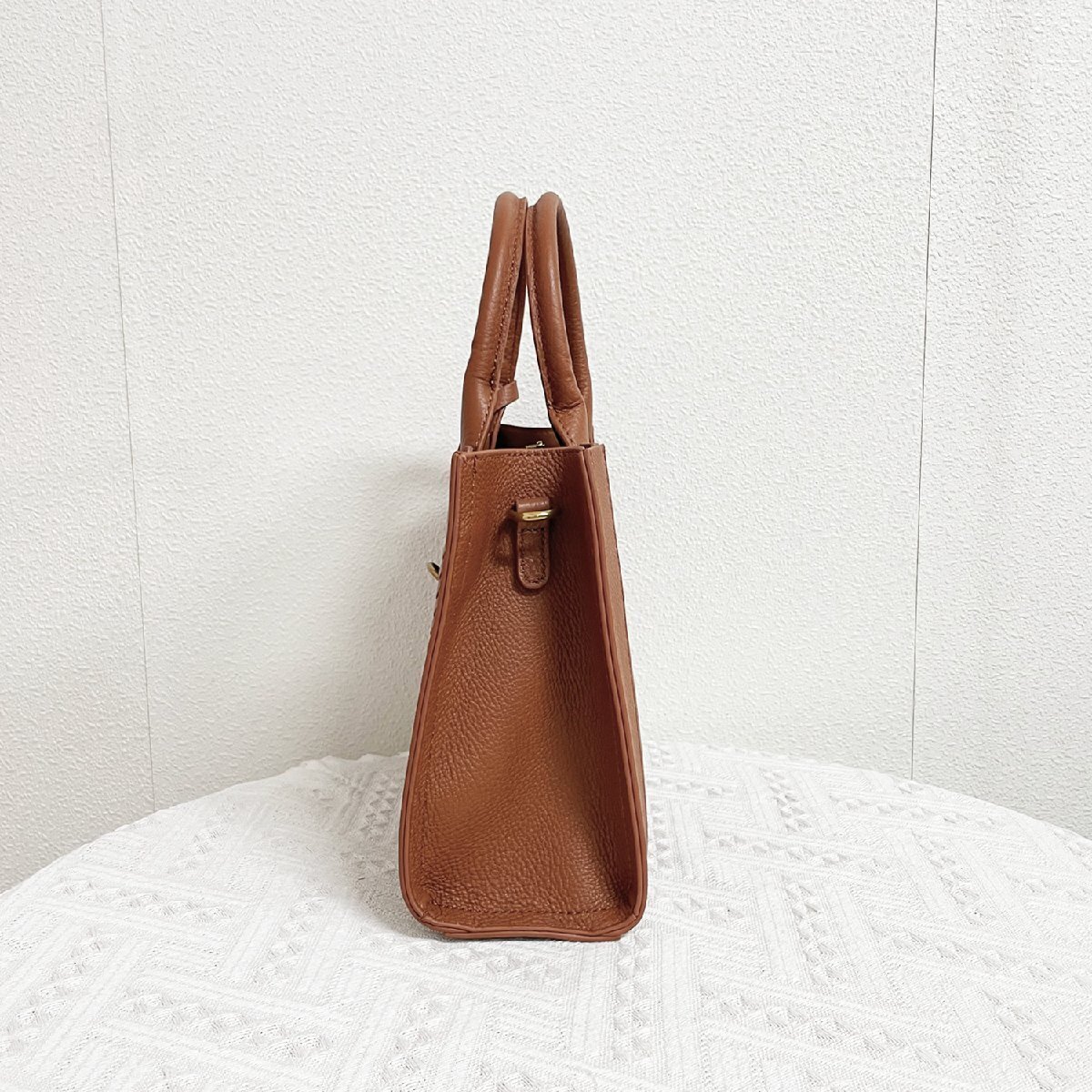 ハンドバッグはシンプルなデザインで、様々なシーンで活躍!両側に丁寧に施された裁縫は、デザインの一部となってお洒落で、女性らしく可愛い雰囲気を味わえます。また、内側は収納スペースが3つに分かれていて整理しやすく、ポーチ、財布、化粧品など、ディリーユースをすっぽり収納!!脱着式のロングショルダーをつけると、斜め掛けしにてお使いいただけ、両手をあけてアクティブに外出できます。