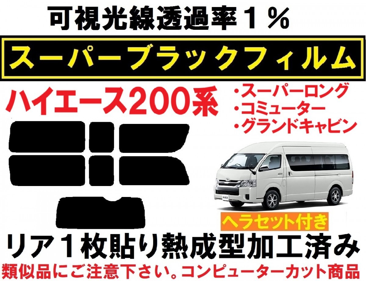 | 200系ハイエース/レジアスエース、ワイドスーパーロングボディ用スーパーブラック『可視光線透過率1%』 1枚貼り成型加工済みフィルムリア7面セットです。(専用施工液付き) 平成16年~令和7年マイナーチェンジ後まで、200系ハイエース・レジアスエース、ワイドスーパーロングボディ(スーパーロングバン・コミューター・グランドキャビン等)各種対応出来ます。 ※適合等 ご不明な点など有りましたら、お気軽にご質問下さい。 ◇◆◇当商品には、画像2のヘラセットが付属します◇◆◇ ■滑りの良いシリコンタイプのゴムヘラ スムーズに水切り(清掃)・貼り付け後の水抜きが出来ます。 実際の業務でも色々な物を試しましたが、シンプルなこの形状・このメーカー・このグレードが1番使いやすいです。 柔軟性が有りガラス(フィルム)に密着するため、フィルム折れも防げます。 ■使いやすい厚みとコシの有るプラヘラ 形状は似ていても各メーカーにより硬さ・厚みなど色々と有ります。 慣れていない方でも扱い易いように少々柔らか目の物になります。 ヘラ先にはフッ素樹脂加工のクロスを貼って有りますので、滑りが良くキズを防止します。 ■ワイプオール(不織布ワイパー) 布同様の丈夫さと紙の持つ吸水性を発揮。糸くずの発生が無く均一素材のため異物混入の心配が有りません。 施工前のガラスクリーニング~施工時にフィルムが触れる可能性の有るガラスの周りのゴム部品の拭き取り清掃~吸水等に大変便利です。 全て実際の業務に使用している物で、その中から使いやすい物を選んでいます。 ヘラセットがご不用の場合、フィルムのみの商品も有ります。こちら ◇◆◇精密コンピューターカット◇◆◇ 貼りやすさを最優先に各部のサイズ・形状など微調整し、改良を重ねた独自のデータを製作。 高精度な最新・大型カッティングプロッターによるカットで正確で滑らかなカットラインを再現しています。 施工業者だからわかる、貼りやすいサイズ・形状に仕上げています。 ◇◆◇リア1枚貼り成型加工済み◇◆◇ リアガラスの湾曲に合わせて熱成型加工して有りますので、平面に貼るのと同様にたるみが出ず1枚貼り出来ます。 ※最適な状態に成型加工して有りますので、ヒートガン(ドライヤー)等は不要です。 ◇◆◇ワイド・スーパーロングボディ 全車対応◇◆◇ 年式 グレードなどにより、ガラスの種類が複数有るため 落札後お車の詳細をお聞きし、適合する商品をご用意させて頂きます。 ※標準ボディ・ワイドロングボディ用はこちら ◇◆◇専用施工液付属◇◆◇ 軽視されがちな施工液ですが、貼りやすさに大きく関わる部分になります。中性洗剤などで代用せず、必ず付属の専用施工液をご使用下さい。 濃度については車種・季節などにより変わりますので、個別にお知らせ致します。 ◇◆◇業務用高品質フィルム使用◇◆◇ 使用しているフィルムは、安心の国内メーカー 業務用高品質フィルム「ニュープロテクション」シリーズです。(可視光線透過率1%) 業務用フィルムの中で最も濃いタイプで、全商品キズに強いハードコート 紫外線99%カット 遮熱性も高めです。 同シリーズで可視光線透過率 5% 10% 15% 25% の物もご用意出来ます。 ご希望の場合は、落札後濃さの指定をして下さい。(部分的な色変えも可能です) ご指定の無い場合、全て1%になります。 部分的にフィルムが必要になった場合、単品販売も承ります。 他にもハイエース用フィルム各種出品中です。 ご不明な点など有りましたら、お気軽にご質問下さい。 主な適合型式:TRH221K TRH223B TRH224W TRH226K TRH228B TRH229W KDH220K KDH221K KDH222B KDH223B KDH225K KDH227B GDH221K GDH226K | ||