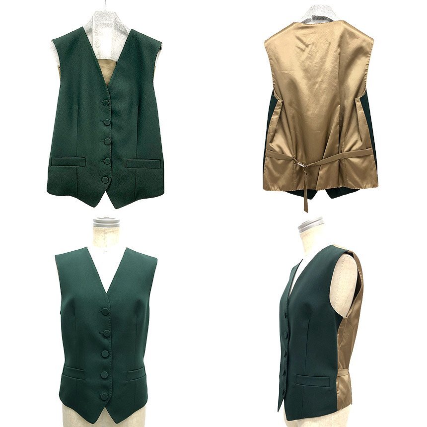 | PRコメント | クラシカルなデザインのベストです。 フロントはグリーン、バックはゴールドのバイカラー。 シンプルコーデのアクセントにぜひ! |