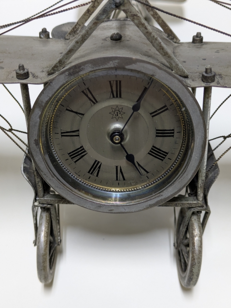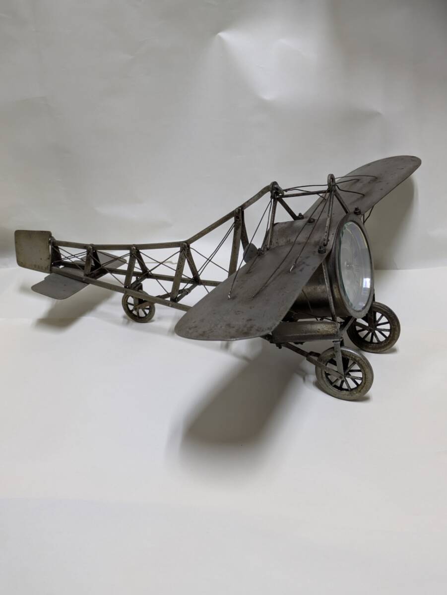 ユンハンス【JUNCHANS】の飛行機型の置時計の出品です。。 稼働品で時間もだいたい合います。全体的にシミ、ヨゴレ等ございます。アンティークですのでNC・NRでよろしくお願いいたします。